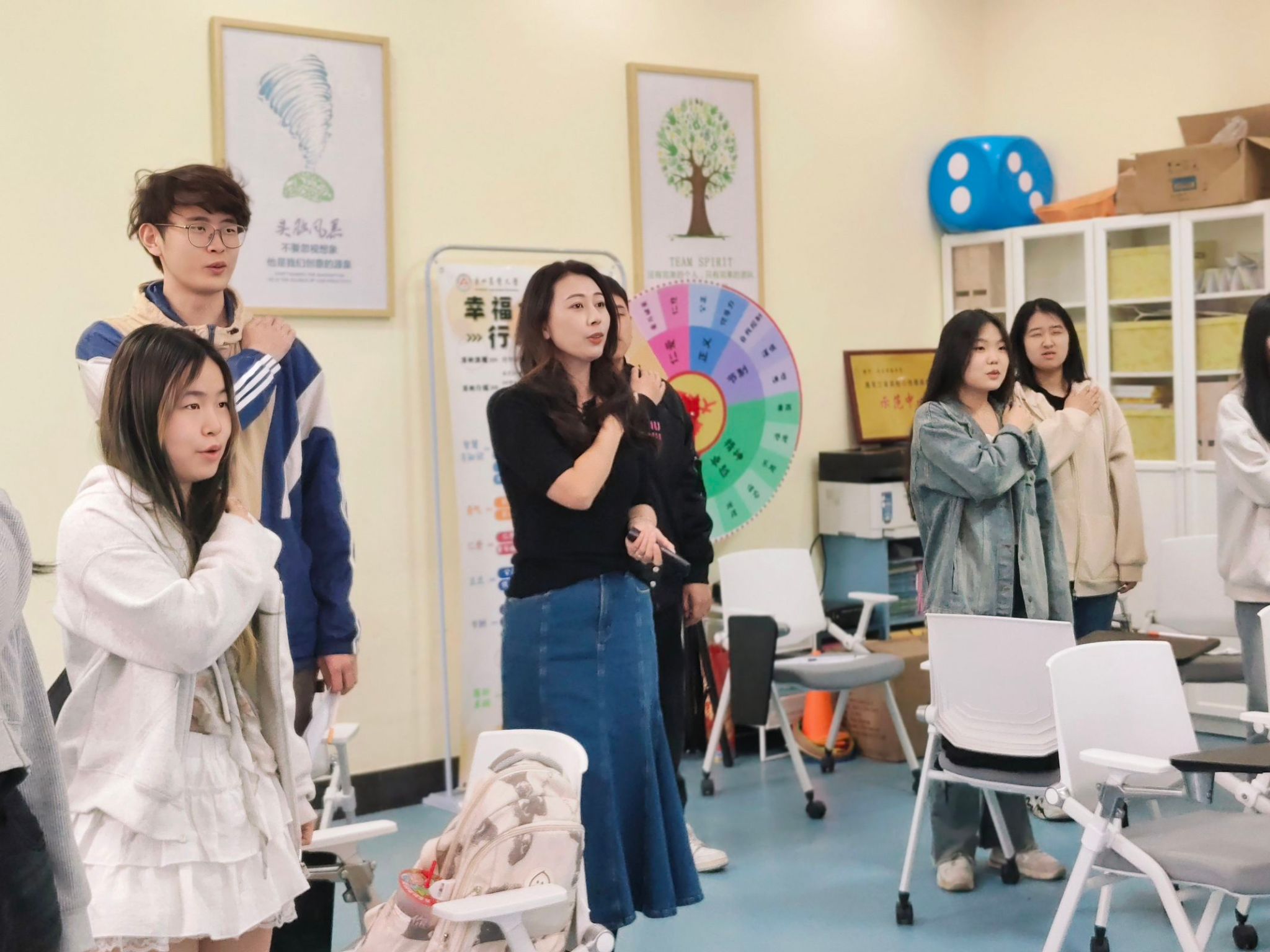 以专业赋能健康成长,形成了“教师引领+朋辈互助+精准关怀”的立体化赋能行动,为学生心理健康筑牢守护防线。聚焦学业压力、人际交往、心理危机识别等大学生常见心理困惑举办心理健康讲座,结合真实案例深入剖析,为同学们分享科学应对策略。开展朋辈心理知识分享,以同龄视角引发共鸣,分享情绪调节、时间管理技巧,搭建起互学互鉴的交流桥梁。心理健康教育中心围绕情绪管理、自我效能、减压赋能、恋爱心理等主题开展了为期3个月的团体心理辅导,引导学生通过角色扮演、小组讨论等形式,敞开心扉深度交流,有效提升自身心理韧性、情绪调节能力。针对家庭经济困难学生,以“太阳花小课堂”为载体普及心理健康知识,关注学生心理需求,帮助他们化解成长困惑,树立乐观态度,增强抗压韧性,在温暖关怀中向阳成长。