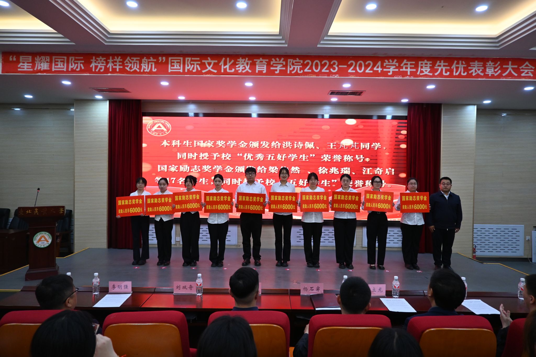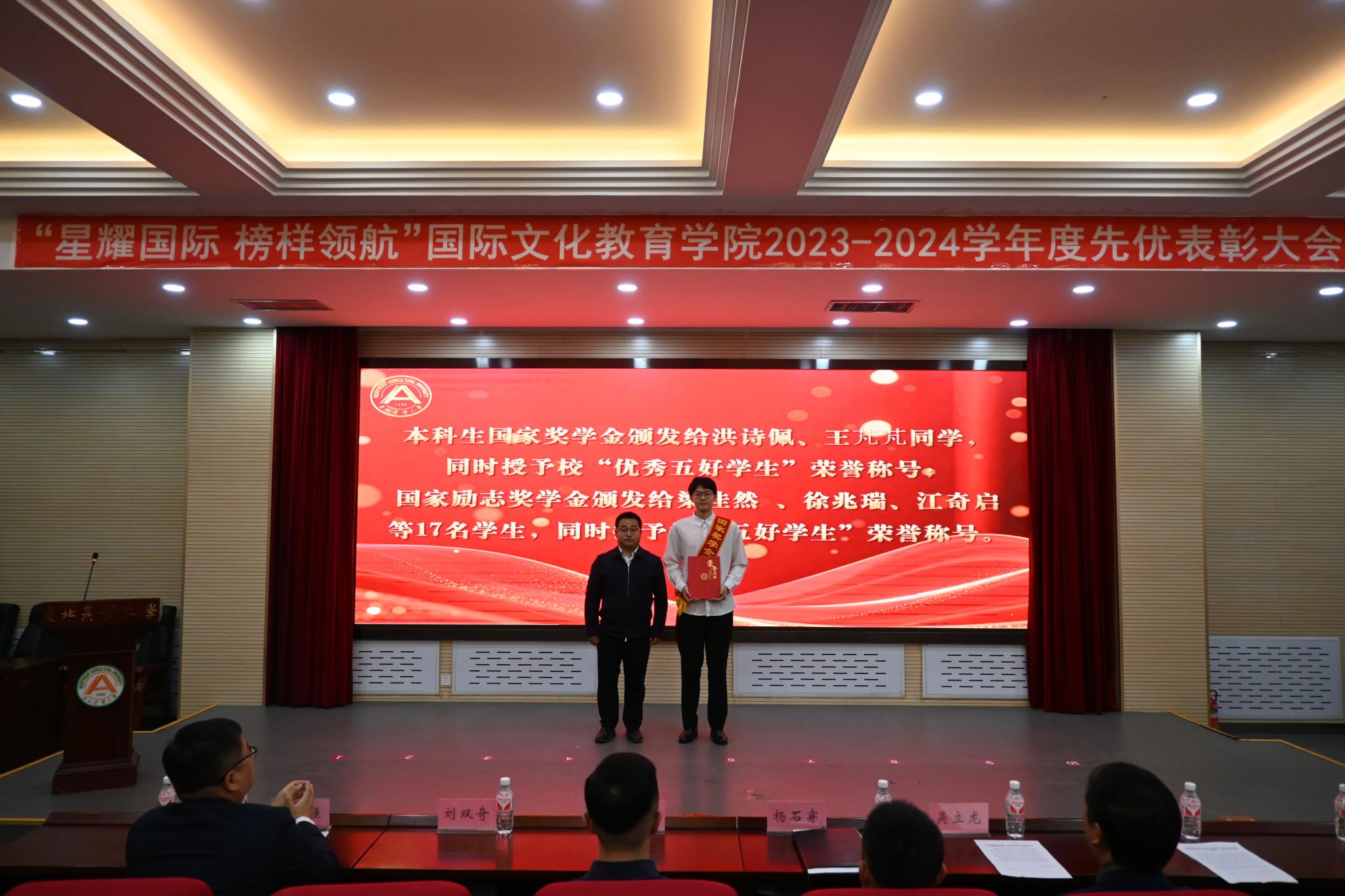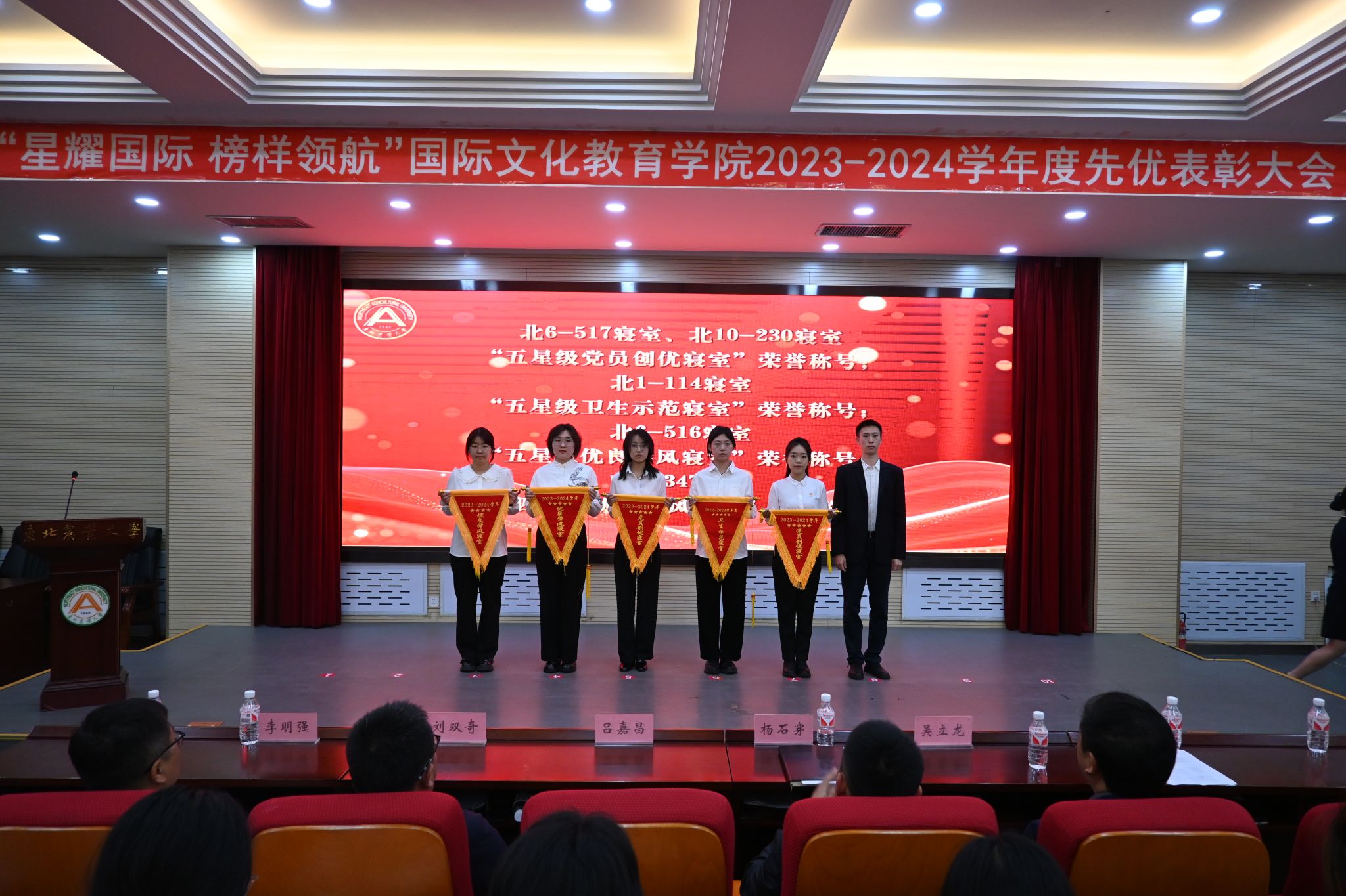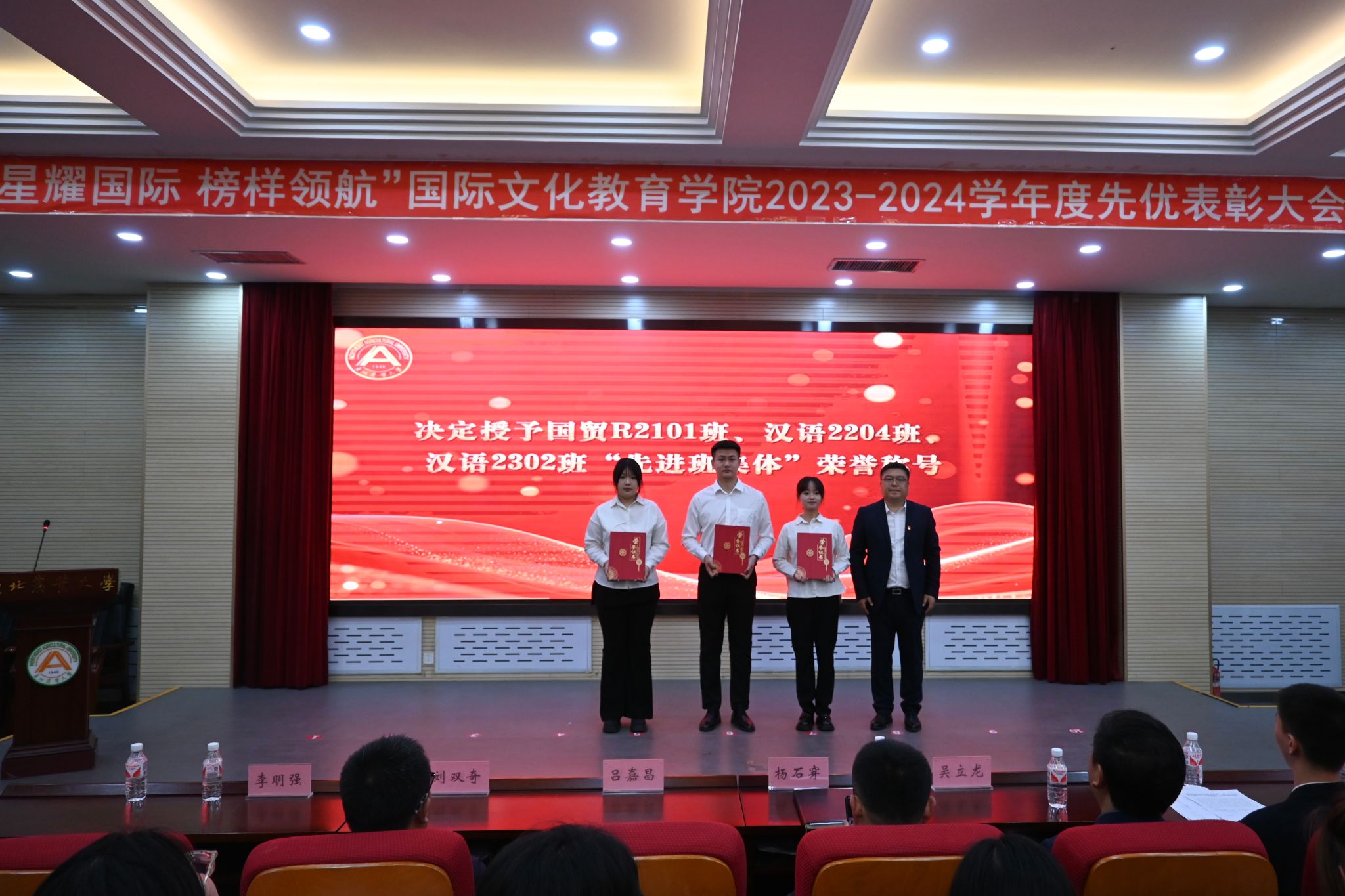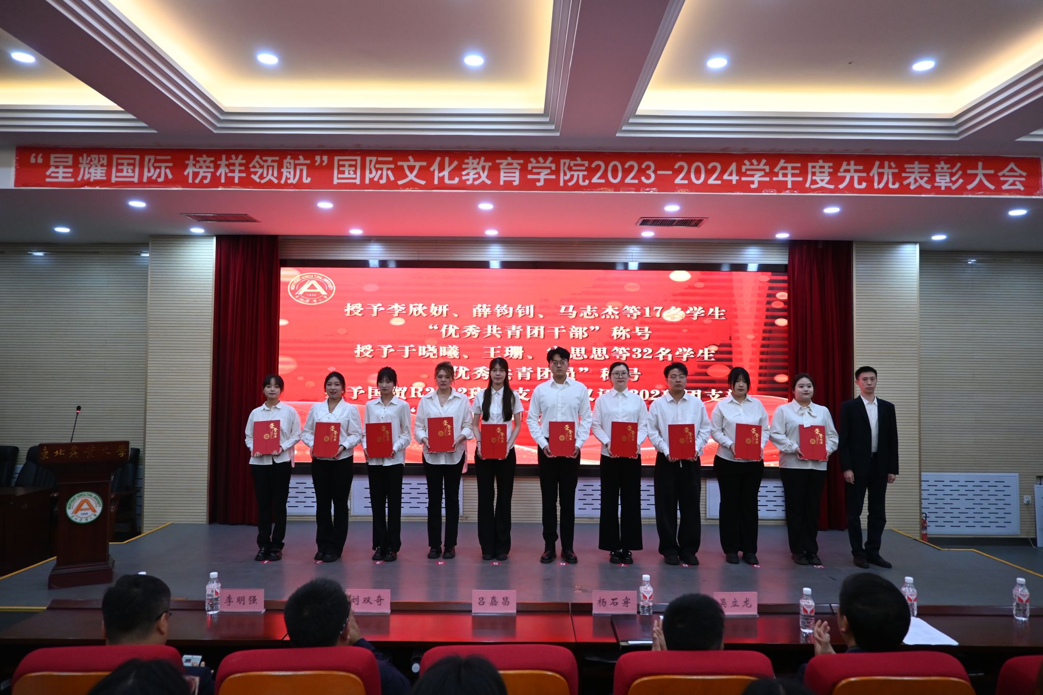 为弘扬优良学风,表彰先优模范,发挥榜样力量,激励广大学生积极进取、奋发向上,5月28日,国际文化教育学院在学院101报告厅举办“星耀国际 榜样领航”2023-2024学年度学生先优表彰大会。校团委书记吕嘉昌、招生就业处副处长吴立龙、学生工作部(学生处、武装部)副部(处)长刘双奇,学院领导班子、教师代表、全体辅导员及学生代表参加会议。会议由学院副处级辅导员王富林主持。