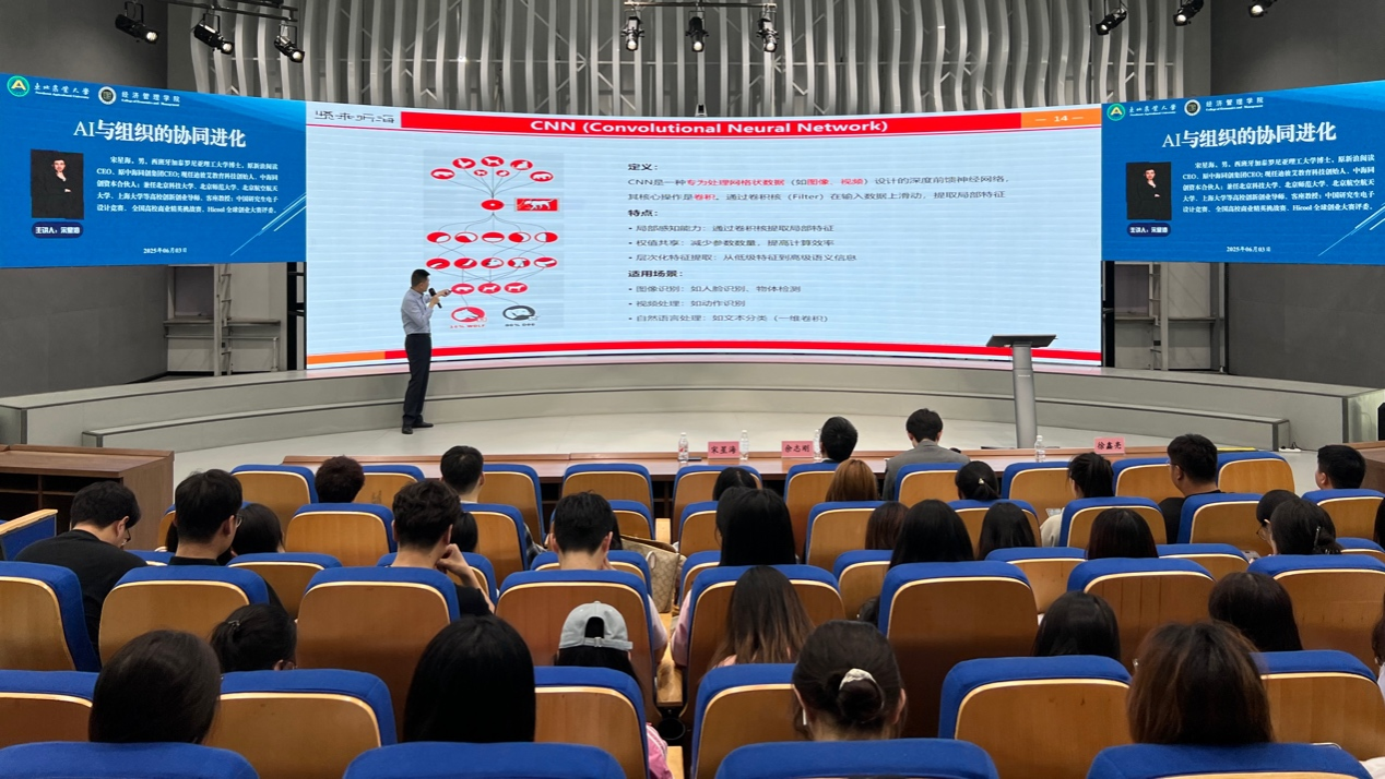 6月3日下午,专业学位教育中心在成栋楼13楼大数据与智能商务报告厅举办主题为“AI与组织的协同进化”的专题讲座。本次讲座特邀迪彼艾教育科技创始人宋星海担任主讲嘉宾。经济管理学院院长余志刚以及2024级专业教育学位中心全体研究生参加本次讲座。讲座由院长助理徐鑫亮主持。