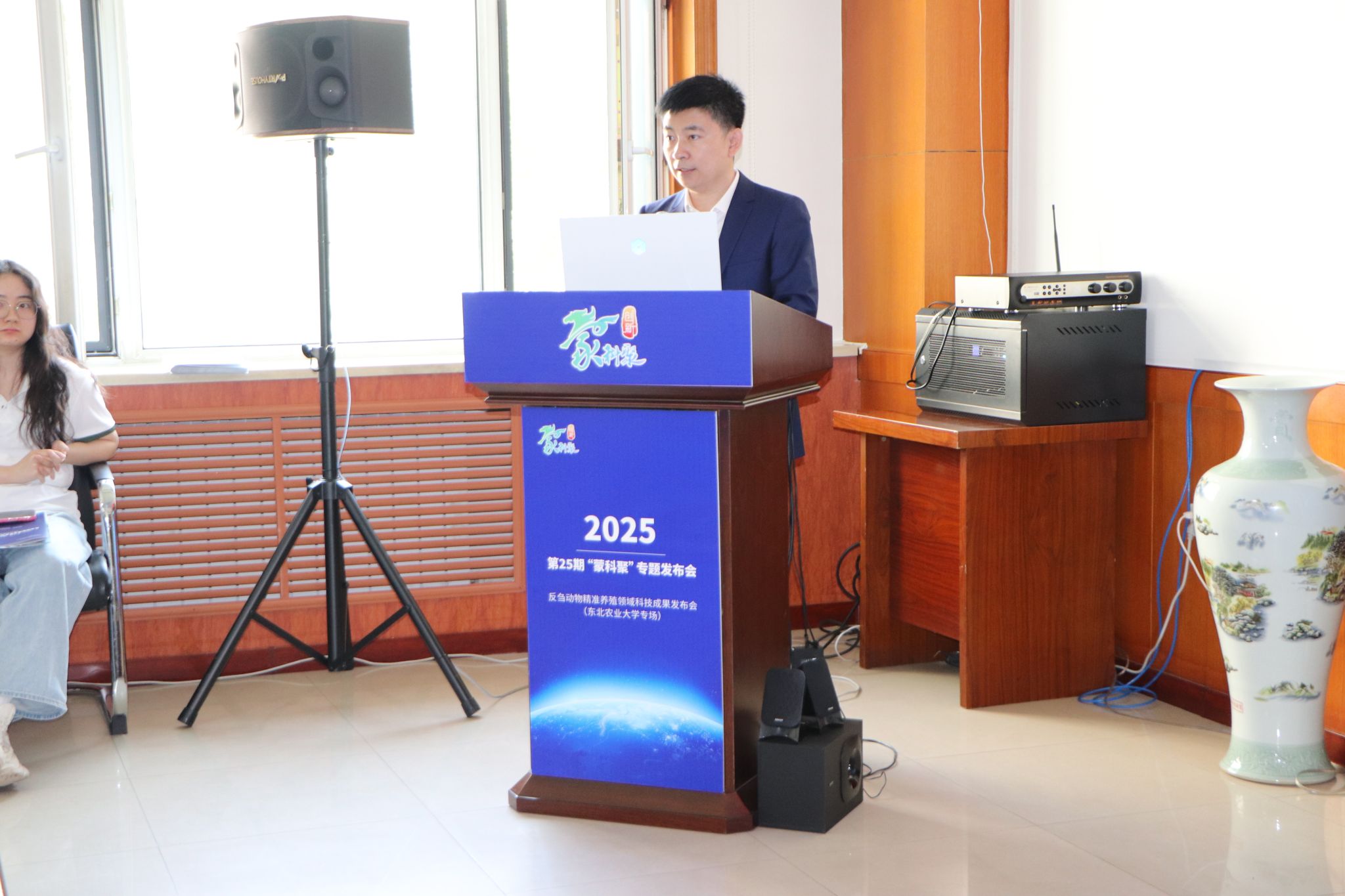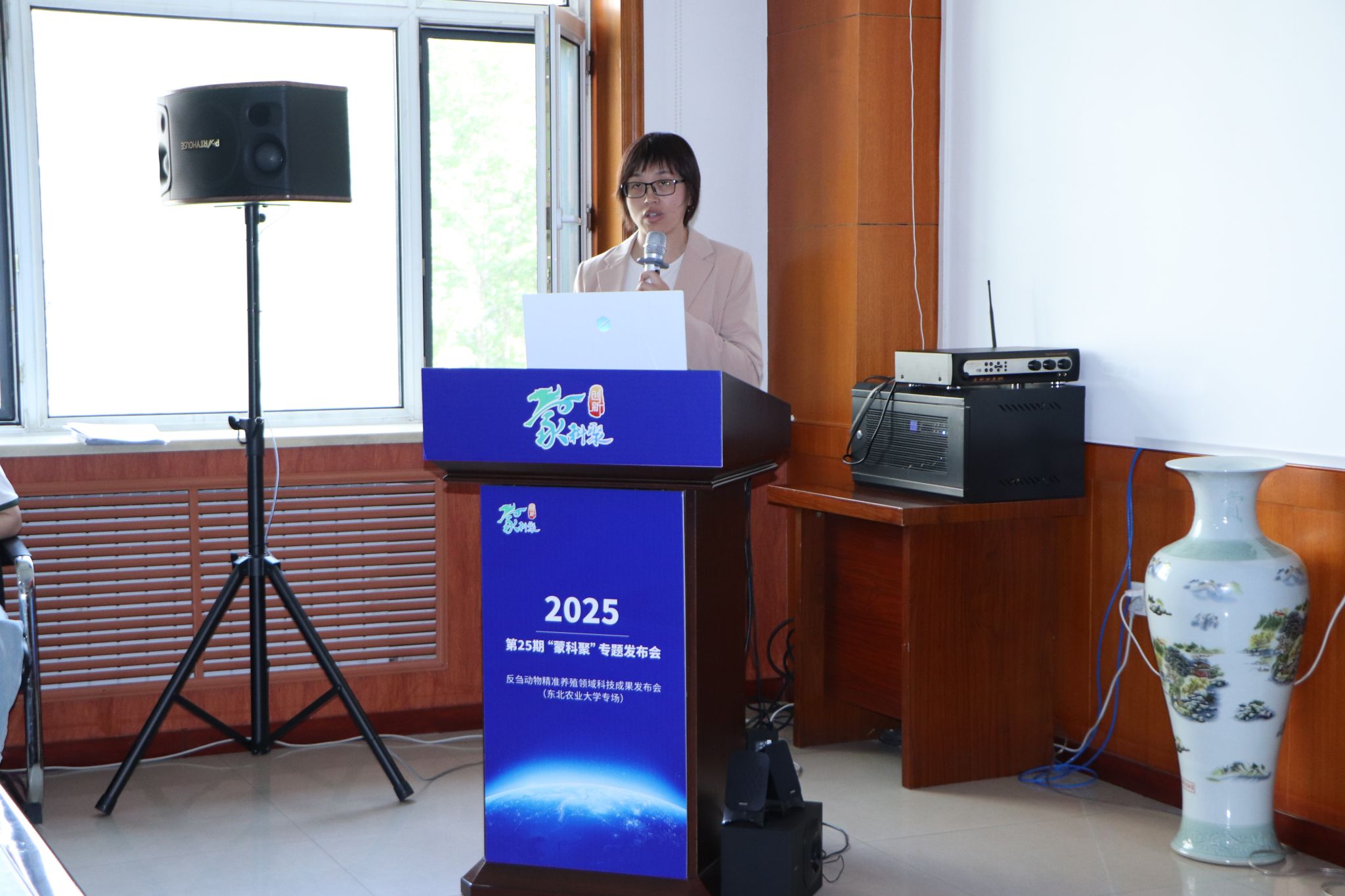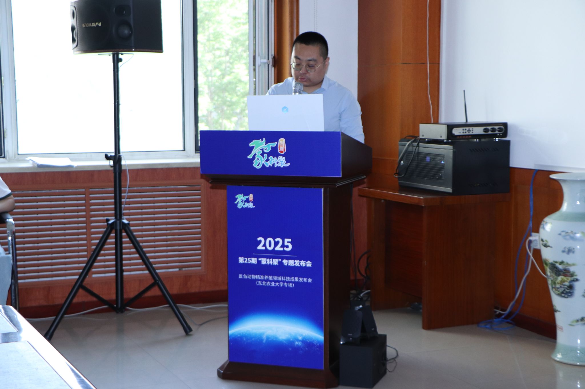 为进一步促进科技成果转化落地,构建完善的产学研用融合体系,6月4日,由内蒙古自治区科技厅指导,内蒙古科学技术研究院、兴安盟科学技术局主办的2025年第25期“蒙科聚”专题发布会——反刍动物精准养殖领域科技成果发布会(东北农业大学专场)在我校动物科学技术学院举行。
