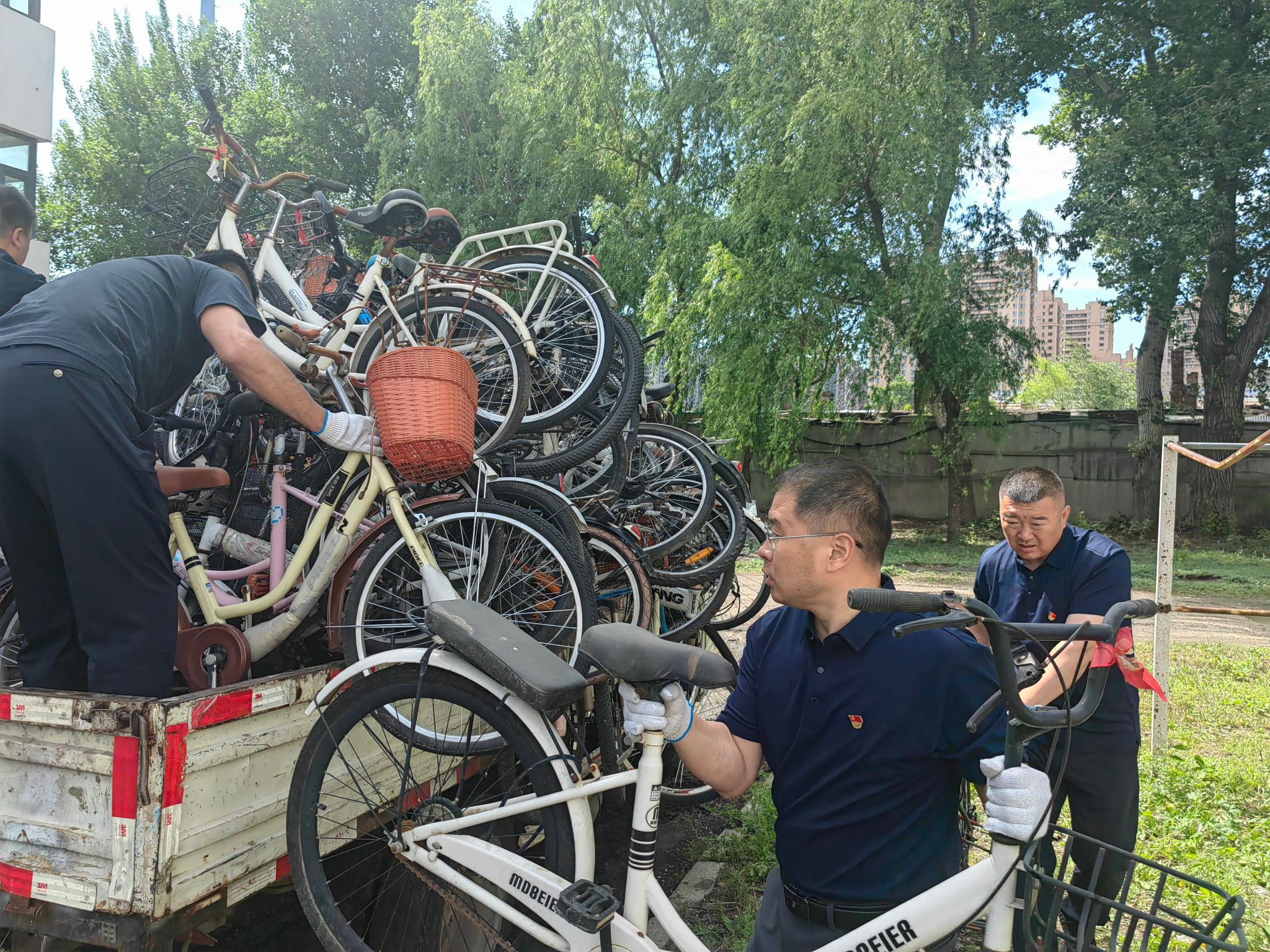 为进一步提升校园交通秩序管理水平,营造安全、文明、有序的校园环境,充分发挥党员先锋模范作用,6月6日上午,保卫处党支部组织全体党员开展了“车辆整治守初心,文明校园我先行”主题党日活动,对校园内废弃非机动车进行集中清理整治。