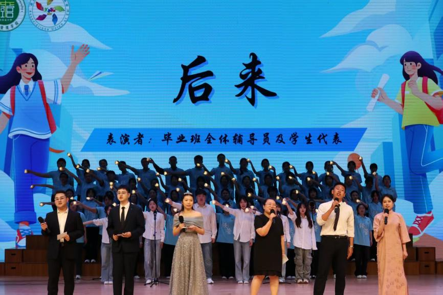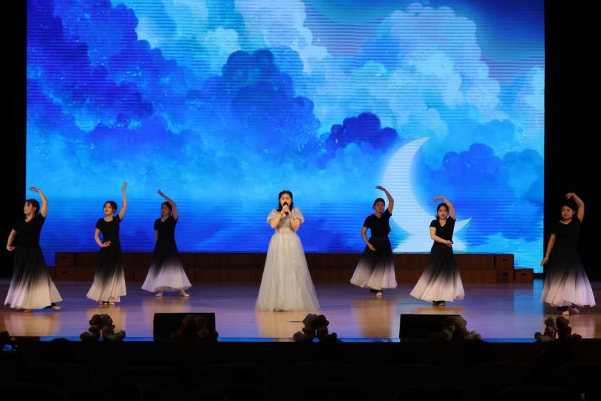 晚会由毕业班辅导员及毕业生的舞蹈串烧热烈开场,点燃全场激情。《歌曲串烧》以动人旋律定格大学的美好时光,勾勒出永不褪色的青春画卷;啦啦操《YES!OK!》用跃动的身姿与灿烂笑容,再次唤醒全场的活力与共鸣;毕业生崔婧磊深情演绎的独唱《芦花》,以清澈空灵的嗓音诉说离情与憧憬,将晚会推向感人至深的情感高潮。