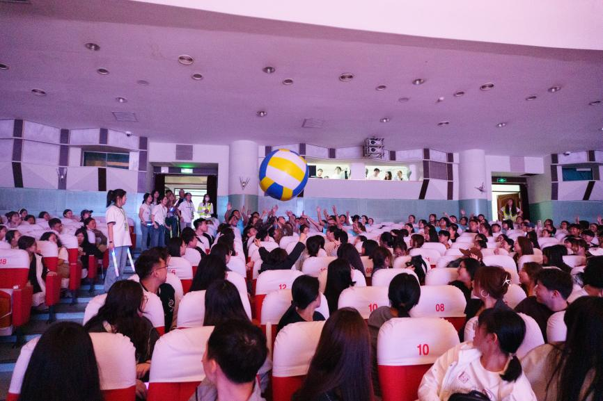 晚会现场,采用定音传球的方式进行抽奖,直径近一米的巨大排球在师生们手中传递,伴随着音乐,排球最终在幸运观众手中定格,全场欢呼声此起彼伏,带有院徽的玩偶成为全场最受喜爱的焦点。