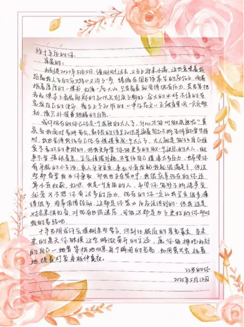 5月15日至18日,学院开展“执笔寄未来,静候花开时”给未来自己的一封信活动。活动中,学生们认真写下对未来的期许、对自己的鼓励,并将信件封存。活动通过对未来的美好展望,引导学生立足当下规划自身成长路径,锚定人生方向,以更加坚定、积极的心态迎接未来的挑战。