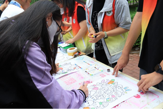 饺子园门口,活动预热点燃了毕业季的热烈氛围。一幅承载青春印记的接力涂鸦长卷徐徐展开,毕业生们以斑斓色彩描绘工程时光。“纸短情长”环节,随机抽取的定制祝福卡片字字真挚,传递着同窗师友的殷殷嘱托。“我与工程合个影”定格了学子与母校建筑相映的笑脸,成为临别前最鲜活的纪念。