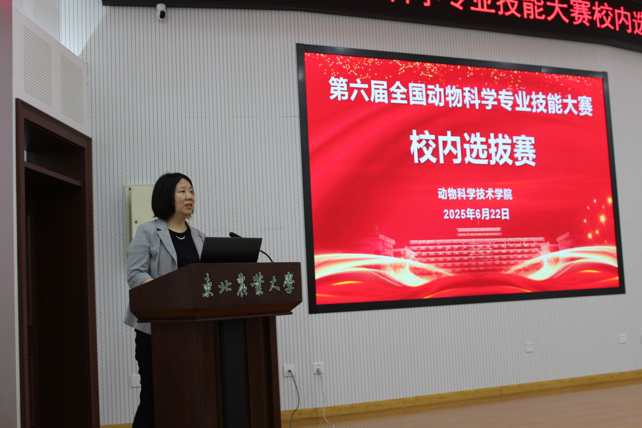 为进一步推进高等院校动物科学专业实践教学改革和实践教学体系建设,加强专业技能和实践动手能力培养,全面提高大学生的综合素质和培养质量,6月22日,动物科学技术学院在图书馆227举办第三届动物科学专业技能大赛暨第六届全国大学生动物科学专业技能大赛选拔赛,共有来自学院动物科学专业的12支代表队参与本次大赛。动物科学技术学院行政负责人董娜、副院长张攀、带队指导教师参加会议。
