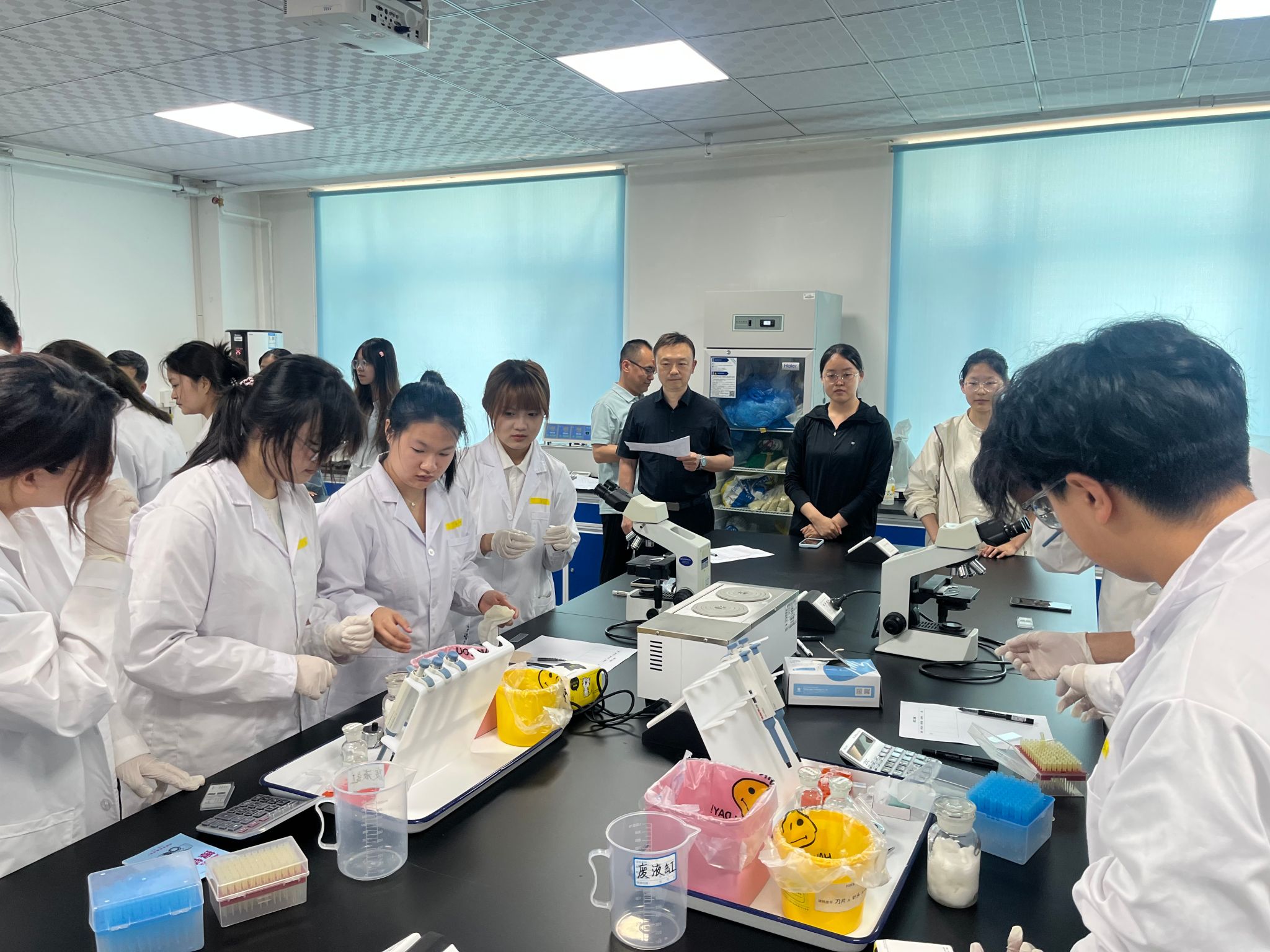 项目一各参赛队伍进行了汇报答辩,专家评委对每支参赛队伍进行现场点评和打分。随后,在动科楼309进行了项目二的比赛,各参赛队伍利用显微镜进行精子活力测定和精子密度测定。专家评委团队综合两项内容的比赛成绩,最终评选出团体一等奖1名,二等奖2名,三等奖4名,优秀奖5名。