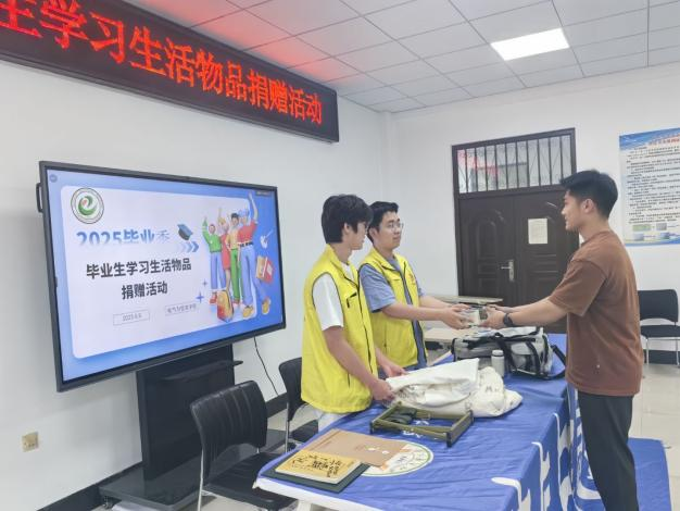 学院青年志愿者服务站组织开展毕业生学习生活物品捐赠活动。活动现场,毕业生们纷纷将精心整理的书籍、文具、生活用品等捐赠出来。青年志愿者服务站的工作人员认真登记每一份捐赠,细致分类打包,确保每一件物品都能精准送到有需要的同学手中。此次捐赠活动体现出毕业生们对母校的深情回馈,对学弟学妹的温暖传递。他们用这种方式,将校园里的美好记忆与奋斗精神传递下去,让青春的故事在传承中续写新的篇章。