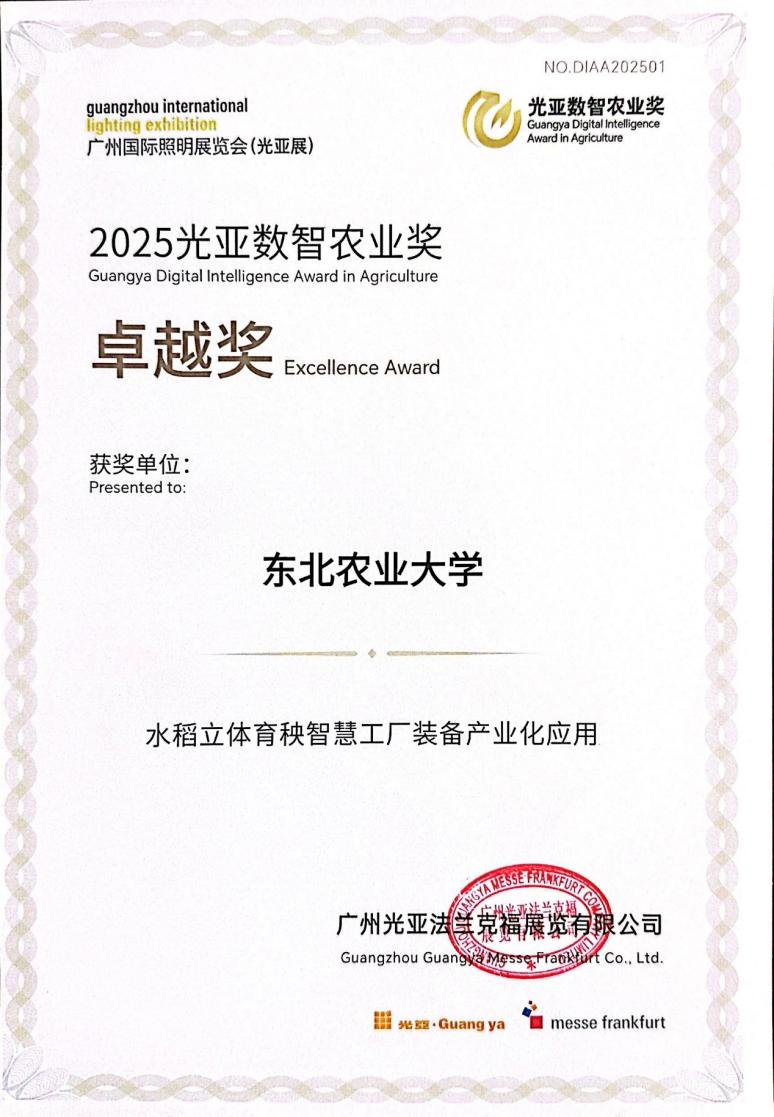 凭借在智慧农业技术领域的突出贡献与创新成果,苏中滨教授团队在展会上荣获首届光亚数智农业奖的卓越奖,这是行业对团队长期以来深耕智慧农业技术研发与应用的高度认可,标志着团队在生物光学与智慧农业交叉领域的科研水平与影响力迈向新高度,也为团队未来的发展注入强大动力。
