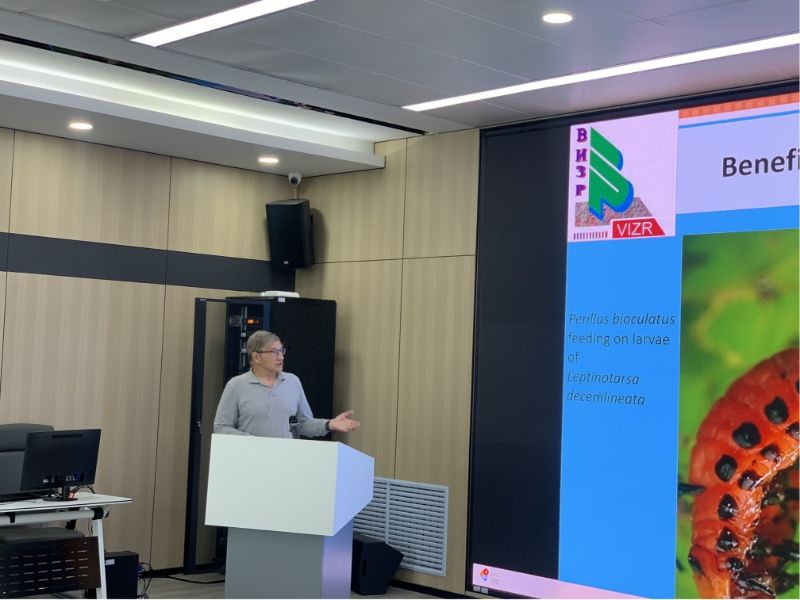 学术报告会上,Igor A. Belousov博士以“利用食虫昆虫资源的关键挑战:诊断、监测和生物多样性评估”为题,系统介绍了食虫昆虫资源的开发与应用,分享了俄罗斯在农业害虫生态调控方面的最新研究成果。Nataliia Beliakova博士则围绕“温室害虫生物防治的基本原理”,详细阐述了温室环境下生物防治技术的实践策略与成功案例,为师生提供了宝贵的理论指导和实践参考。