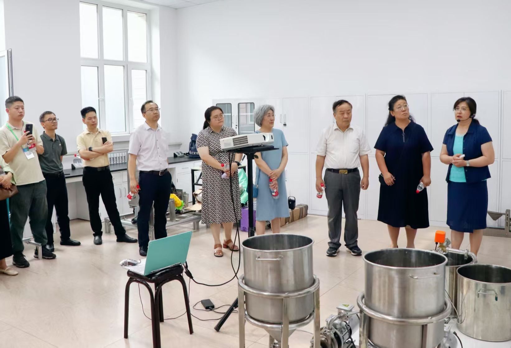 国家“十四五”课题的任务负责人、我校工程学院教授迟媛及团队成员详细介绍了专用型液蛋基料差异化加工与品质提升装备创制的完成情况,并现场演示了液蛋基料生产精确配比及实时在线监测设备的运行过程。国家“十四五”项目负责人刘静波指出,工程学院团队的液蛋基料生产线实现连续化生产和在线监测技术应用前景广阔,可进一步升级优化,在企业生产线开展适配验证。