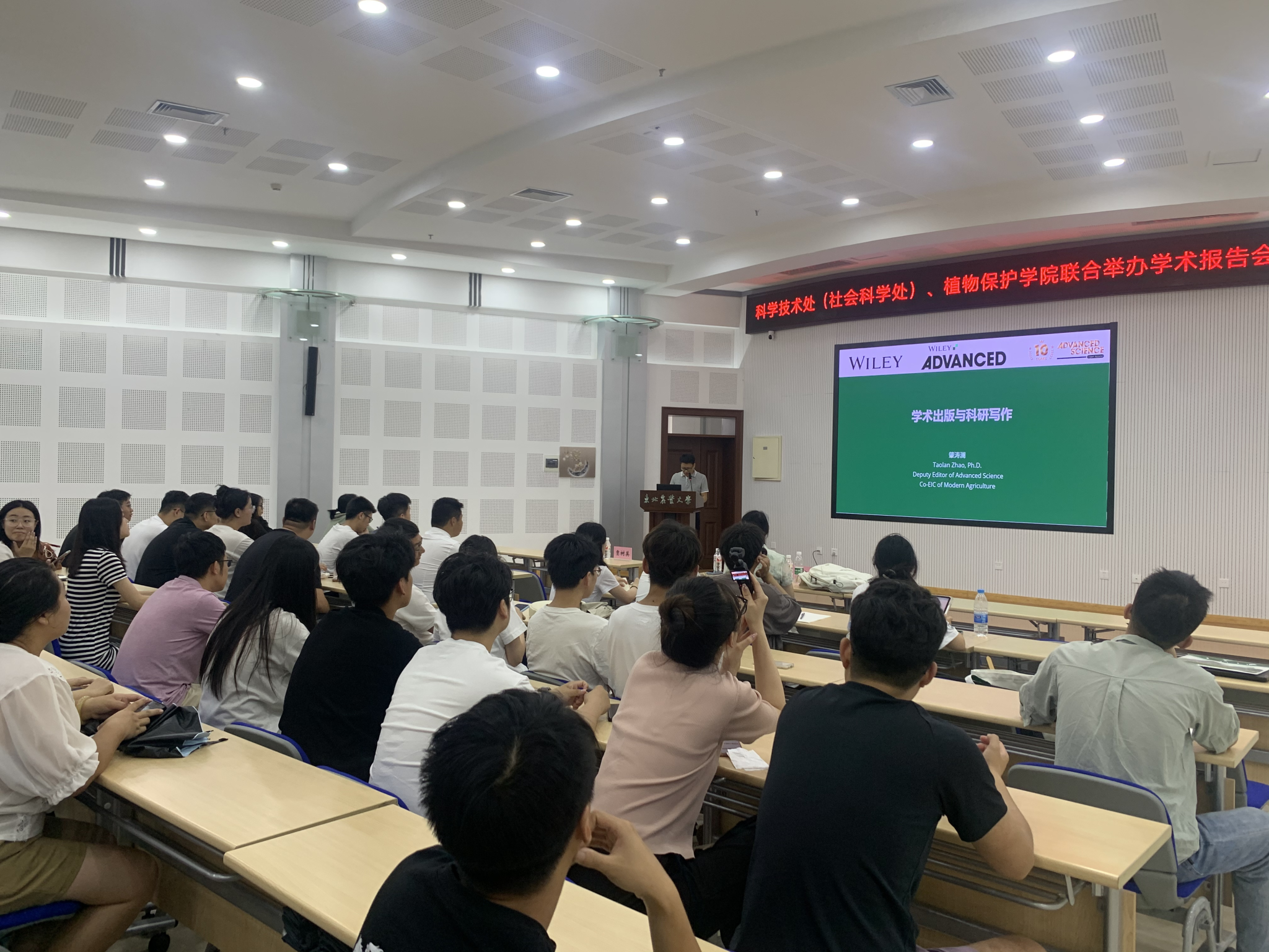 为助力广大师生提升学术出版与科研写作能力,7月9日,科学技术处(社会科学处)与植物保护学院联合邀请Advanced Science期刊副主编肇涛澜来校交流访问,并以“学术出版与科研写作”为主题举办学术报告会,共有100余名师生参加会议。报告会由植物保护学院副院长程晓非主持。