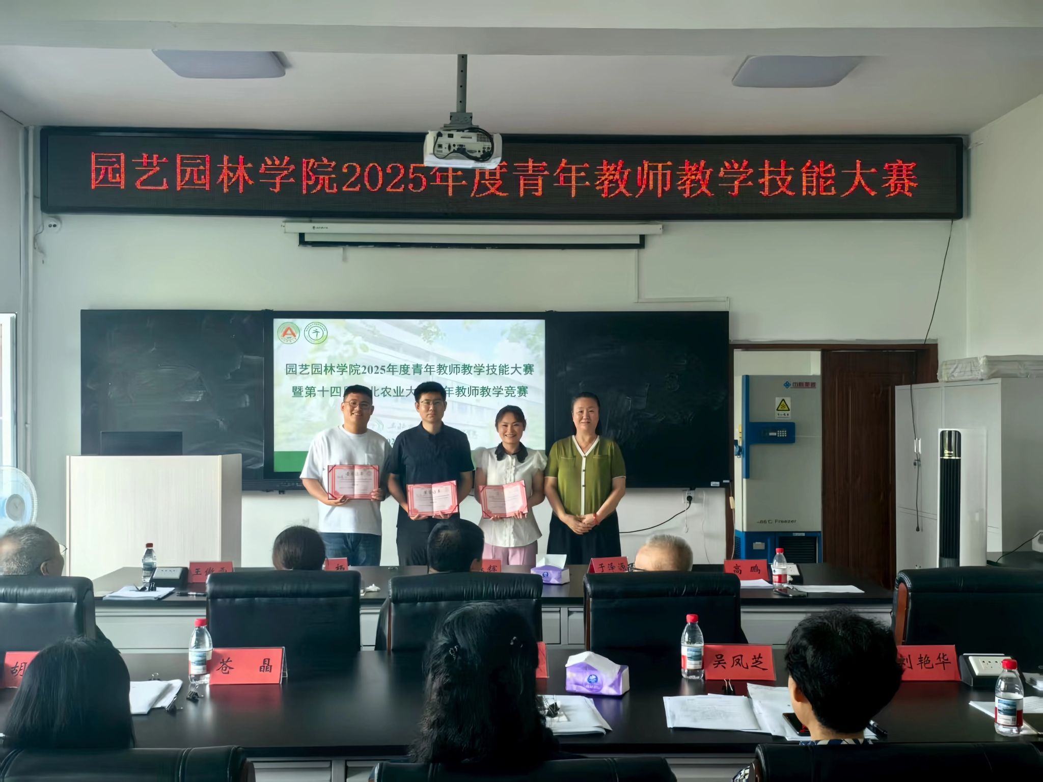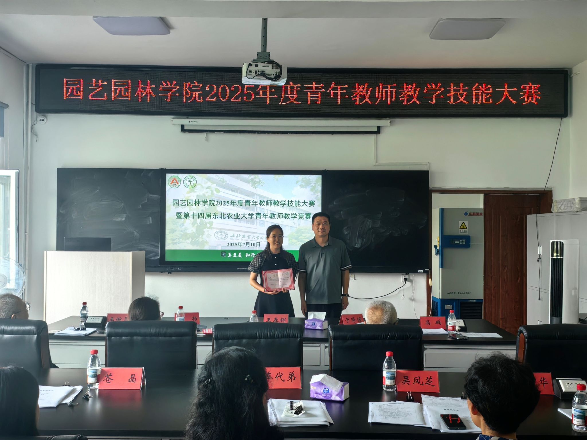 为增进青年教师的学习与交流,营造“人人关心教学、人人热爱教学、人人精于教学”的良好氛围,不断提升青年教师的教学能力和业务水平,7月10日,园艺园林学院举办青年教师教学技能大赛暨第十四届东北农业大学青年教师教学竞赛,校工会副主席王春辉、高教研究与教学质量评估中心副主任刘杨,园艺园林学院党委书记刘艳华、院长高鹏、党委副书记魏天赋、副院长马鸿艳出席活动。比赛邀请校总督学于泽源教授,校教学督导车代弟教授、苍晶教授,教育部教指委委员、园艺园林学院教授王傲雪,黑龙江省教学名师、园艺园林学院教授吴凤芝、胡海辉教授担任评委。竞赛由高鹏主持。