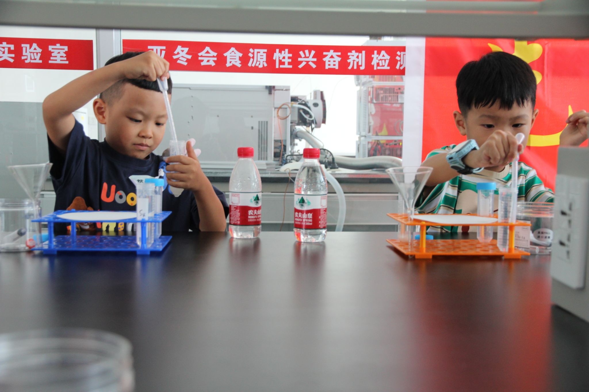 在实验室,绿研院专业技术人员化身“科学导游”,带领孩子动手体验样品称量、样品提取,液样净化等样品前处理过程,以及乳酸菌培养基观察等小实验,告诉孩子绿研院如何利用科技手段保障食品“绿色、安全、营养、美味”。