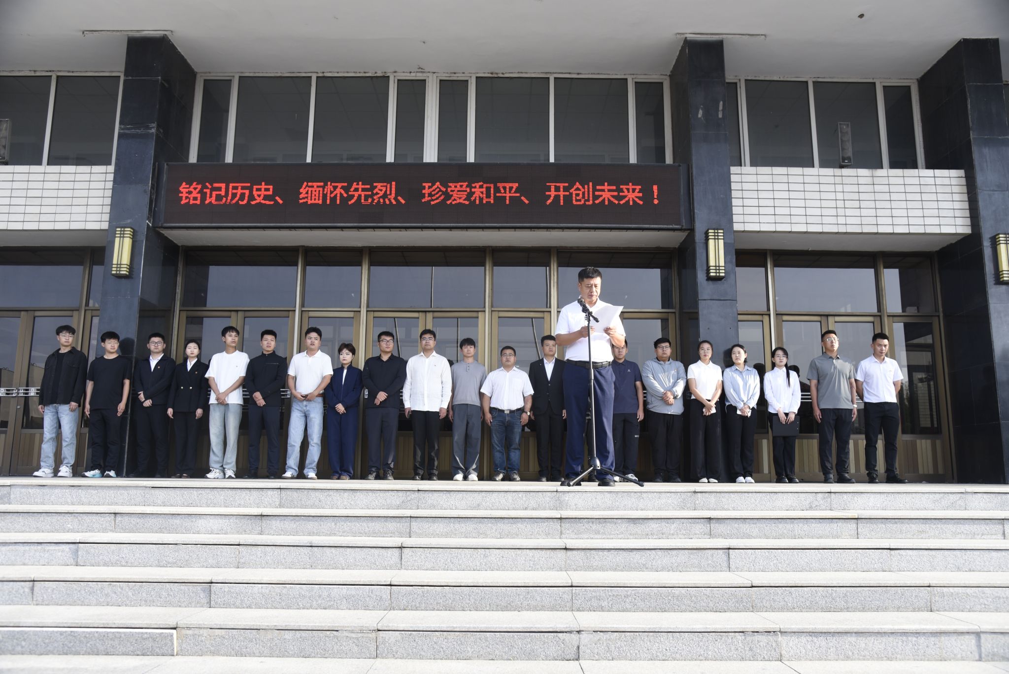 为深切缅怀革命先烈,大力弘扬以爱国主义为核心的伟大民族精神,进一步激发广大师生的爱国热情与使命担当,9月3日清晨,在纪念中国人民抗日战争暨世界反法西斯战争胜利80周年之际,我校于主楼广场庄严举行升国旗仪式。