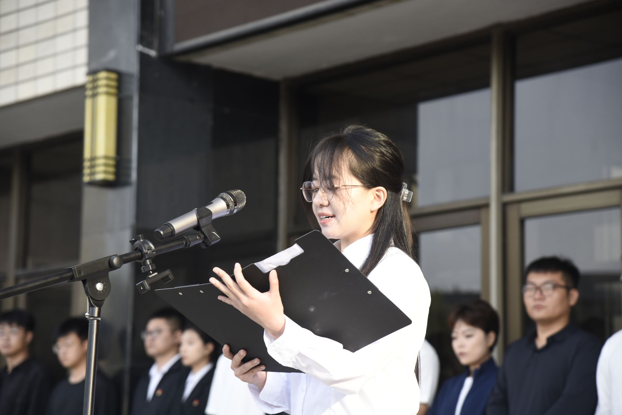电气与信息学院计科2407班刘芮孜作主题发言。她回顾了艰苦卓绝的抗战历程,并结合自身学习成长经历,表达了东农学子铭记历史、传承精神、强农兴农、报效祖国的坚定信念。她表示,作为新时代农业高校学子,必将勇担强农使命,把青春奋斗融入党和人民的事业之中。真挚而坚定的发言,深深感染了现场每一位师生,展现了东农青年昂扬向上的精神风貌。