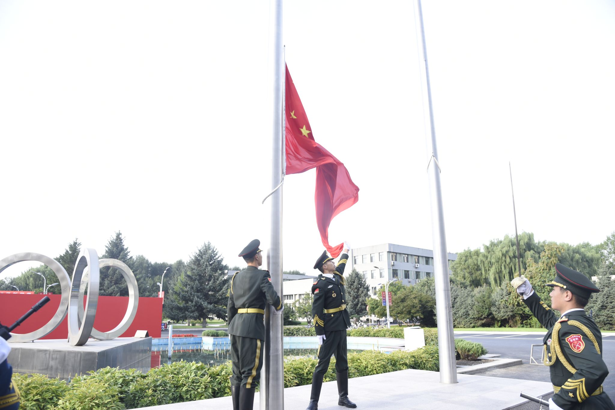 清晨6时30分,仪式正式开始。伴随着雄壮激昂的《义勇军进行曲》,鲜艳的五星红旗冉冉升起,迎风飘扬。全体师生整齐肃立,神情庄重,目光坚定地注视国旗,用铿锵有力的歌声表达对祖国最深切的热爱与最崇高的敬意。国旗升至顶端,广场气氛庄严肃穆,师生集体默哀一分钟,深切缅怀在抗日战争和世界反法西斯战争中英勇献身的先烈。