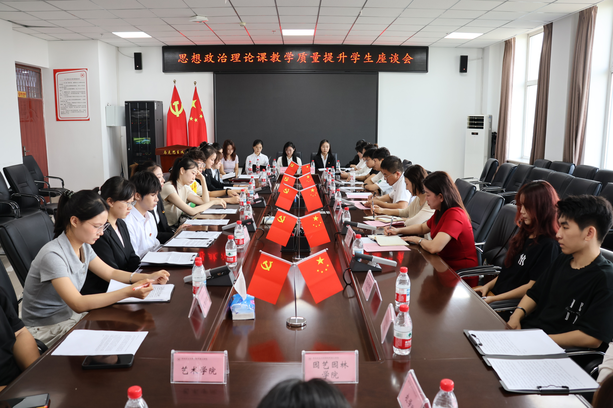 为贯彻落实本科教育教学思想大讨论要求部署,深化推动我校思想政治理论课教学改革,不断提高我校思政课针对性和吸引力,9月3日下午,马克思主义学院在成栋楼1010会议室组织召开了思政课教学质量提升学生座谈会。学生工作部(学生处、武装部)副部(处)长刘钊熠,高教研究与教学质量评估中心实验师戚颖,马克思主义学院副院长刘大勇、副处级辅导员石波罗及16个学院31位学生代表参加座谈。会议由刘大勇主持。
