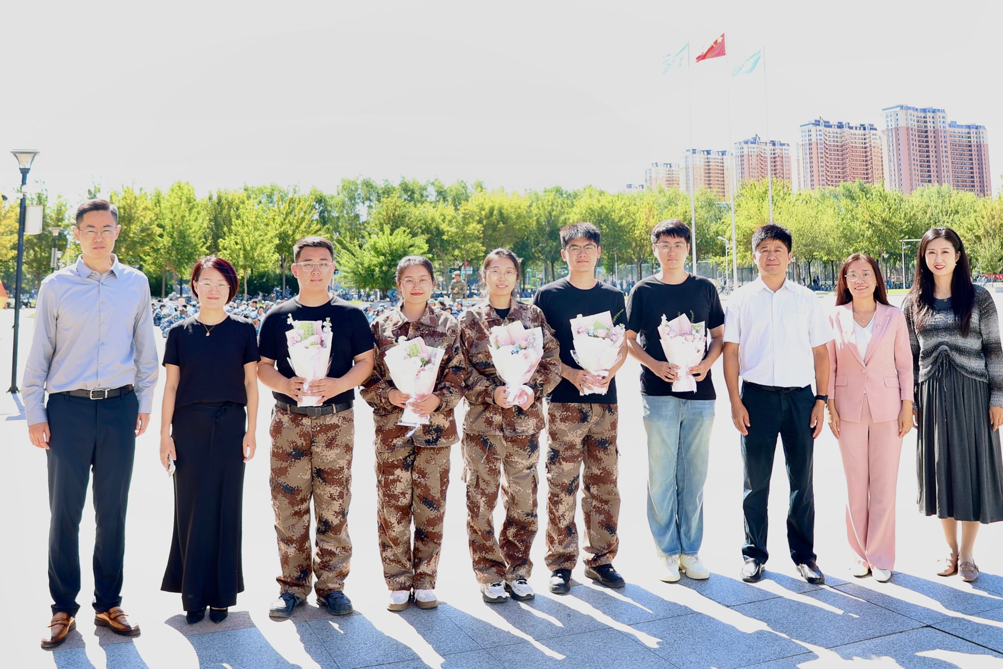 学院领导和教师代表带着鲜花走进退休老教师家中,感谢他们数十年如一日在教学岗位上的坚守与奉献,退休老教师深切感受到学院始终如一的牵挂与敬意。成栋楼内、研究生楼、成栋艺术楼、军训场地中学院领导纷纷为任课教师、新生辅导员们送上鲜花和贺卡,代表学院向其致以节日的诚挚祝福。