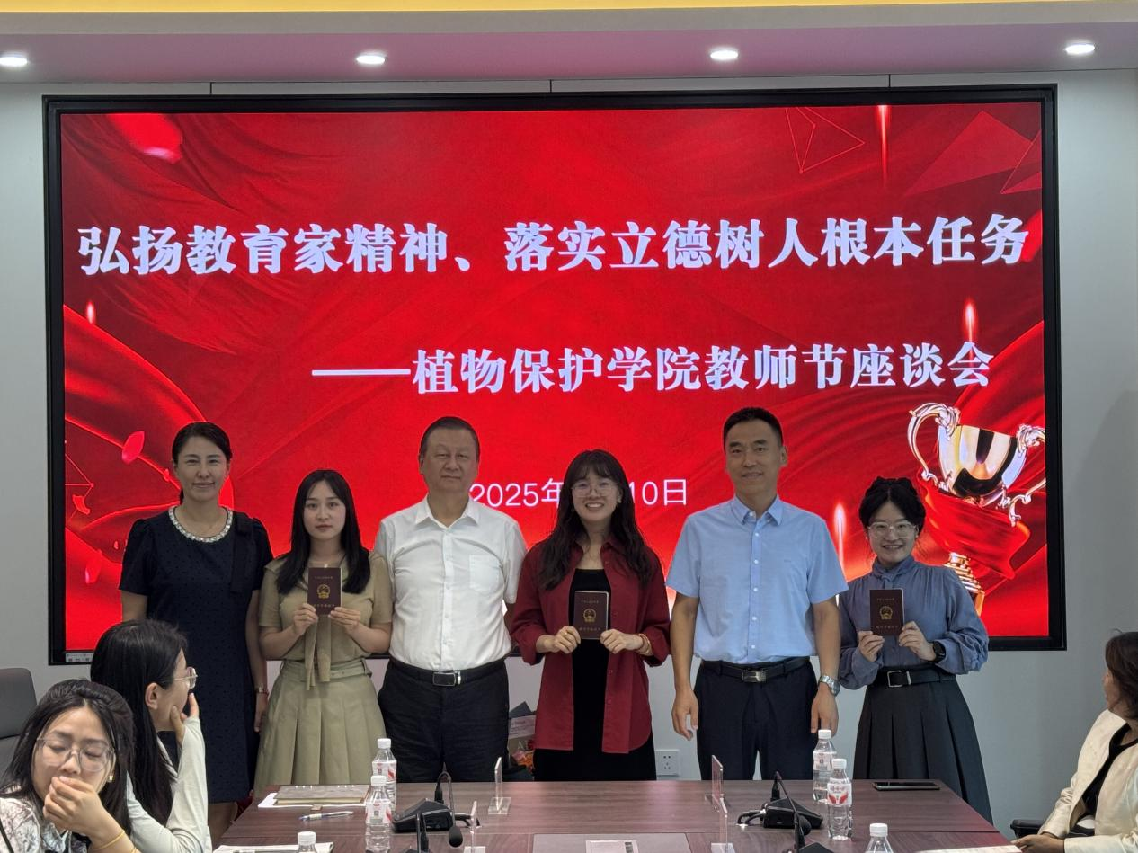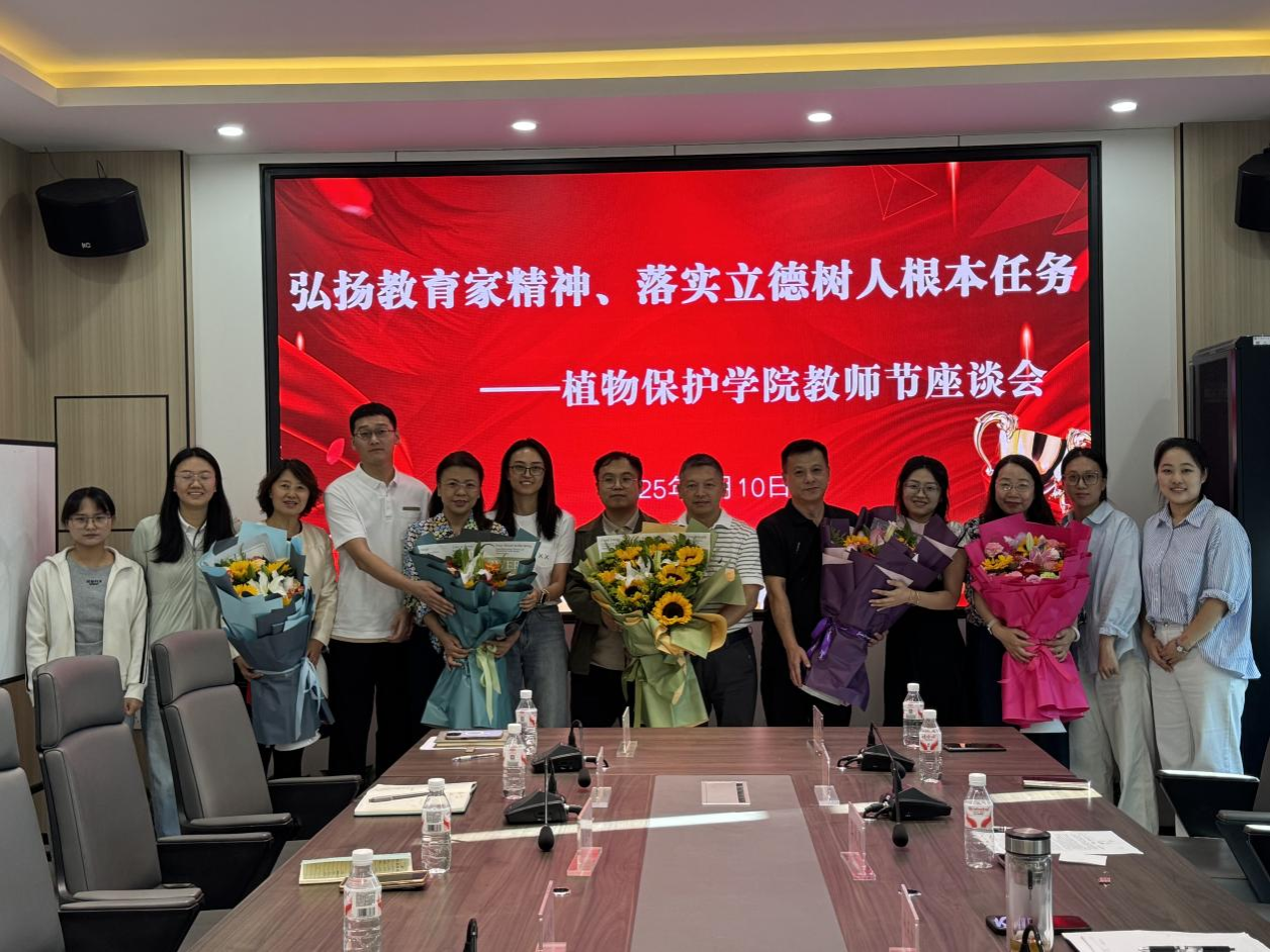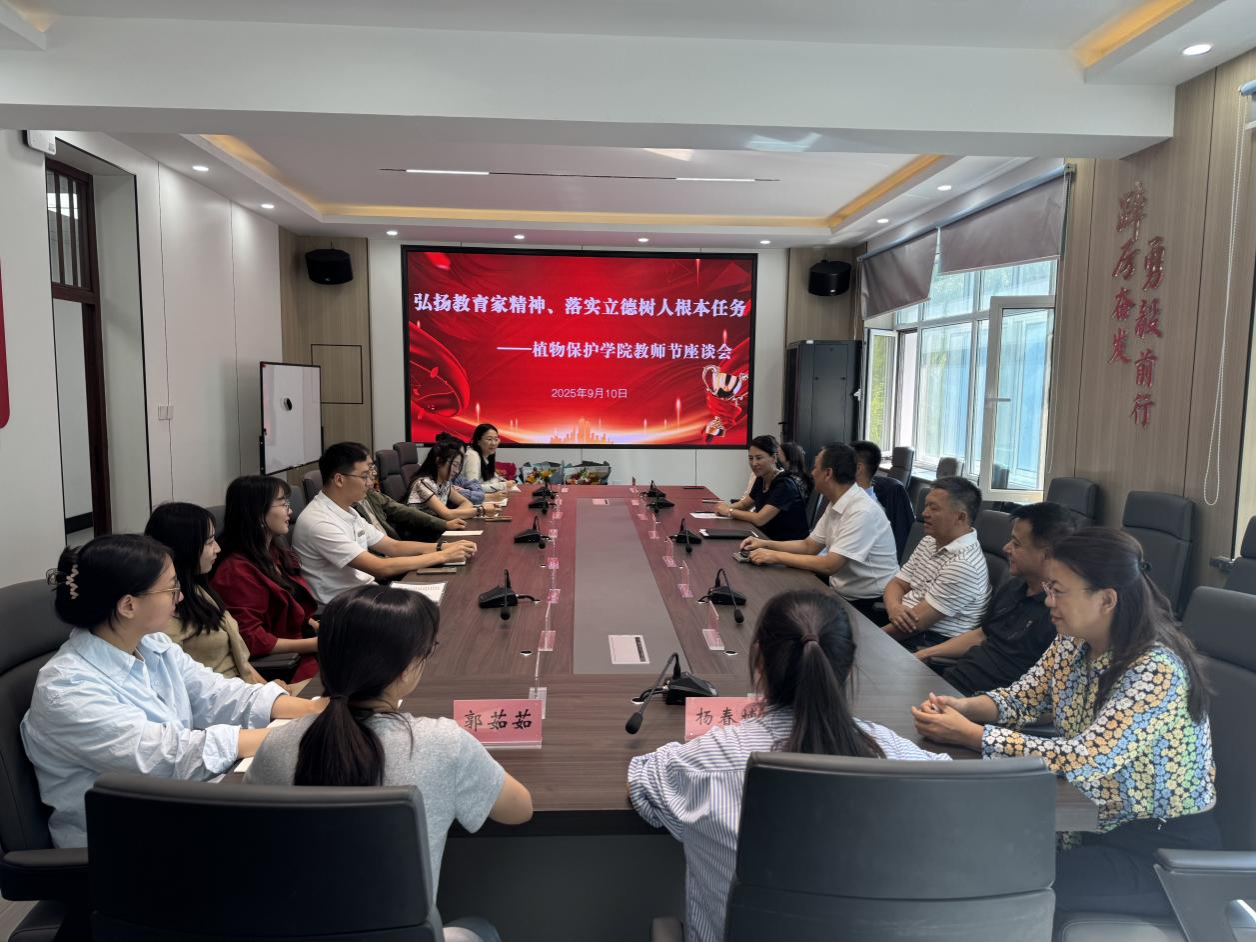 为庆祝第41个教师节,9月10日,植物保护学院召开以“弘扬教育家精神、落实立德树人根本任务”为主题的教师节座谈会。学院领导班子成员、从教三十年教师代表及青年教工代表参会,座谈会由学院工会主席李秋月主持。