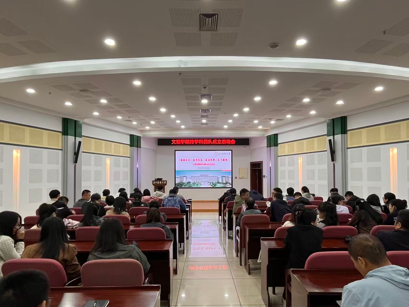 为更好地发挥基础学科对交叉研究的支撑作用,推动以“基础学科+”模式实现学科交叉融合,9月24日下午,文理学院在图书馆229报告厅举办了跨学科团队成立启动会,学院党委书记李荣军、院长付颖,副院长吴秋峰、白靖文,数学、物理、化学等系(部)研究生导师、学院45周岁及以下的青年教师和实验员参加会议。会议由付颖主持。