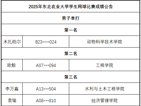 9月20日至21日,由我校体育运动委员会主办,体育教研部、校团委承办,校网球协会协助举办的东北农业大学2025年学生网球比赛在南区网球场顺利举行。