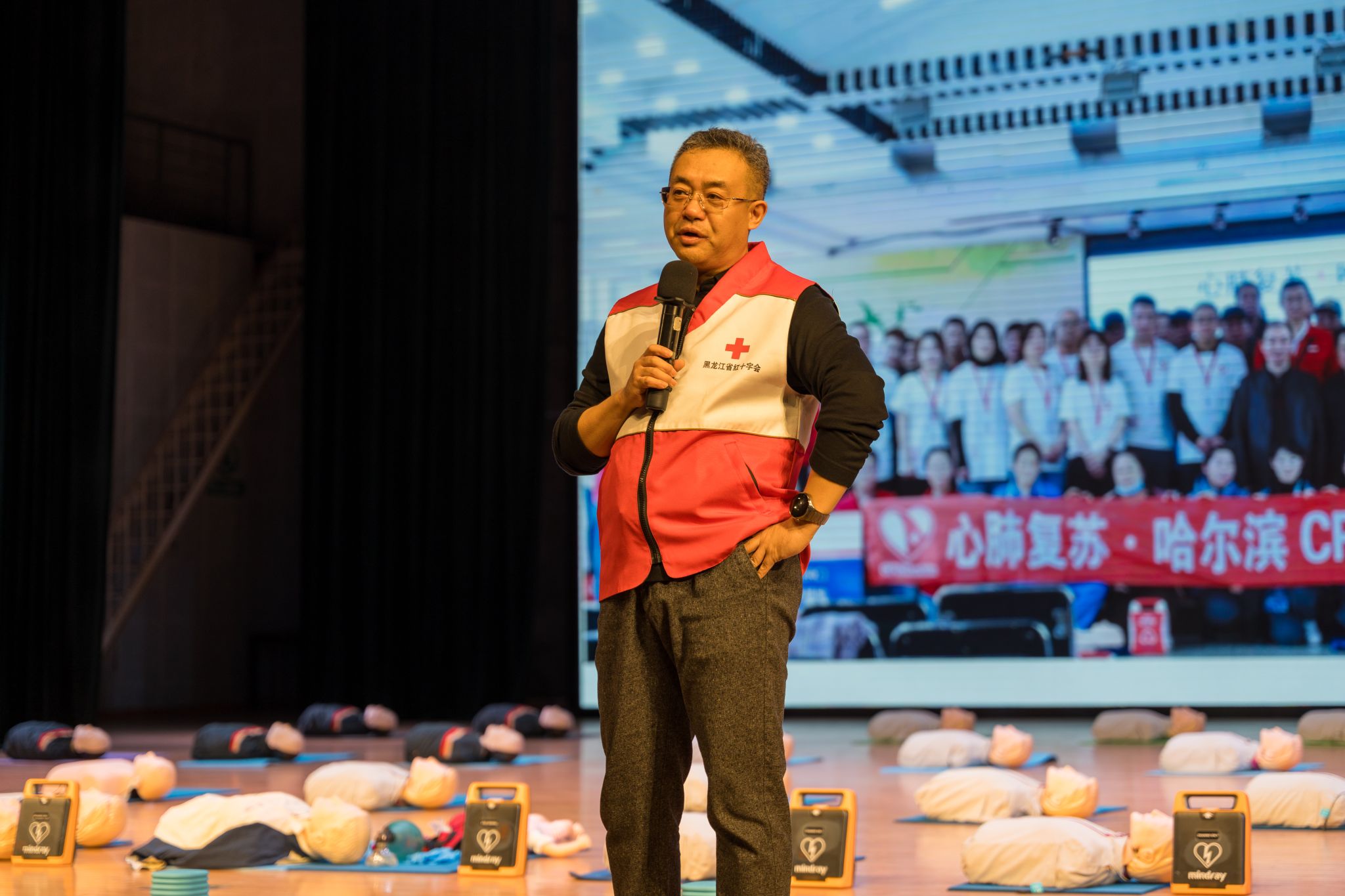培训由黑龙江省红十字备灾捐献中心副主任谭志强主讲。培训内容紧扣应急救护实战需求,通过生动的案例、详实的数据,讲解了心脏骤停的识别、呼救、胸外按压、人工呼吸以及AED操作的完整流程,强调了及时、规范施救对于挽救生命的重要性,更聚焦于心肺复苏(CPR)、AED使用及气道梗阻急救等核心技能的实操训练。