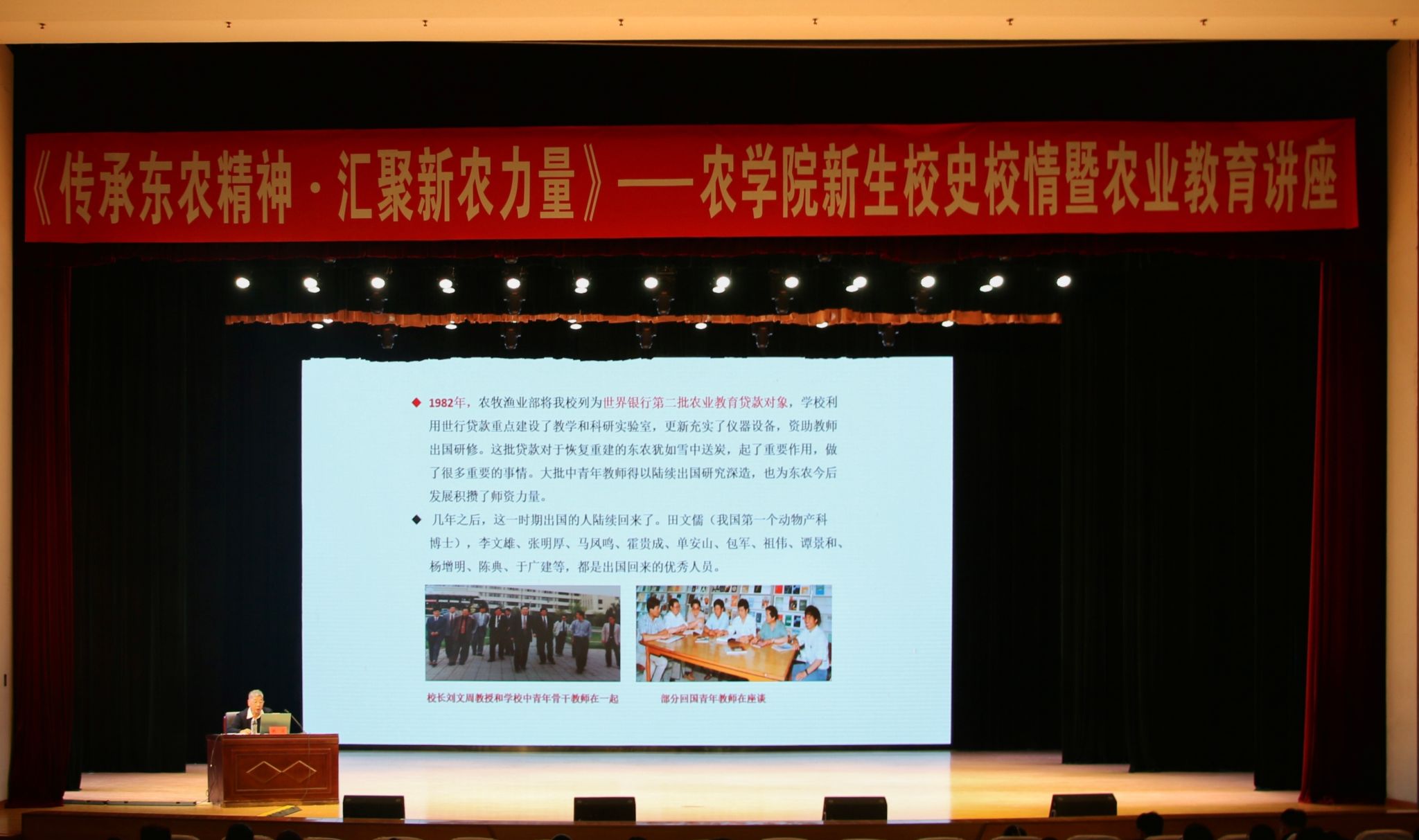 为使2025级新生更好地了解东农建校历史及发展成就,厚植爱农情怀,练就兴农本领,10月15日,农学院邀请农业科技领域专家、原农学院院长魏湜教授作题为《传承东农精神·汇聚新农力量》的新生校史校情暨农业教育讲座。农学院党委副书记马涛、正处级辅导员张华英、全体辅导员和2025级本硕博新生参加讲座。讲座由辅导员何思远主持。
