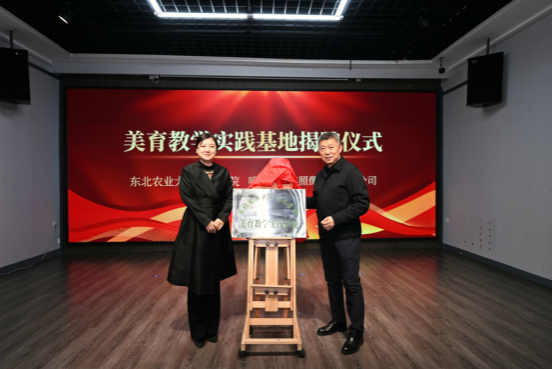 刘丹与夏富祥共同为“东北农业大学艺术学院美育教学实践基地”揭牌。