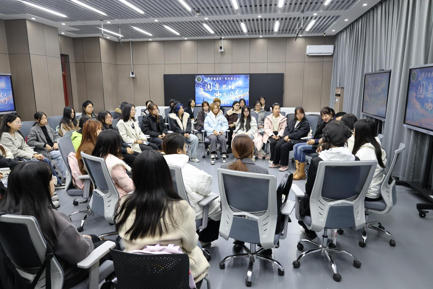 为加强学院学风建设、拓宽师生学术交流桥梁,精准回应学生在学业规划、职业选择中的核心困惑,助力学生全面了解专业特点与发展前景、明确成长方向、提升综合竞争力,10月17日,经济管理学院举办“圆桌共话,师友同行”——第三期“经管圆桌派”座谈会,本场座谈会为会计学专业专场座谈会,会计系主任李萍、副主任马吉巍、党支部书记温薇出席本次座谈会。会议由辅导员尹思佳主持。