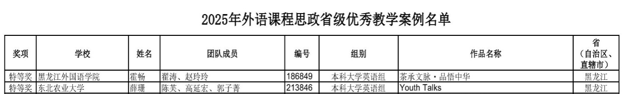 近日,由教育部高等学校大学外语教学指导委员会指导,高等教育出版社、全国高校教师网络培训中心与《中国外语》编辑部联合主办的2025年外语课程思政省级优秀教学案例名单正式公布。文理学院外语公共教学部“农耕文化英语教学团队”荣获本科大学英语组特等奖,创我校在该项赛事中的历史最佳成绩。