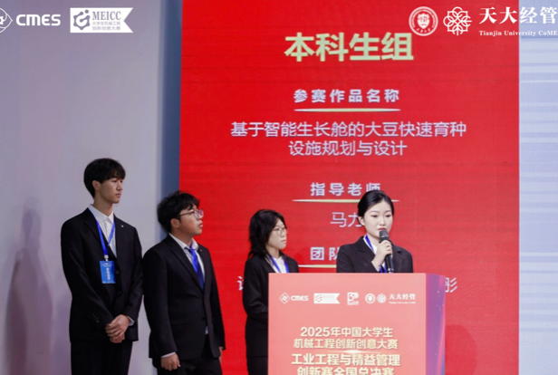 总决赛由方案汇报和评委提问两个部分组成,我校作品《基于智能生长舱的大豆快速育种设施规划与设计》由工程学院副教授马力指导,依托农业农村部东北智慧农业技术重点实验室,以优化大豆育种设施及产线为目标,综合运用工业工程的技术与方法,实现寒区大豆快速育种全流程智能化,提升品种筛选效率。该方案将进一步推动工业工程方法及技术在农业生产中的融合及应用。