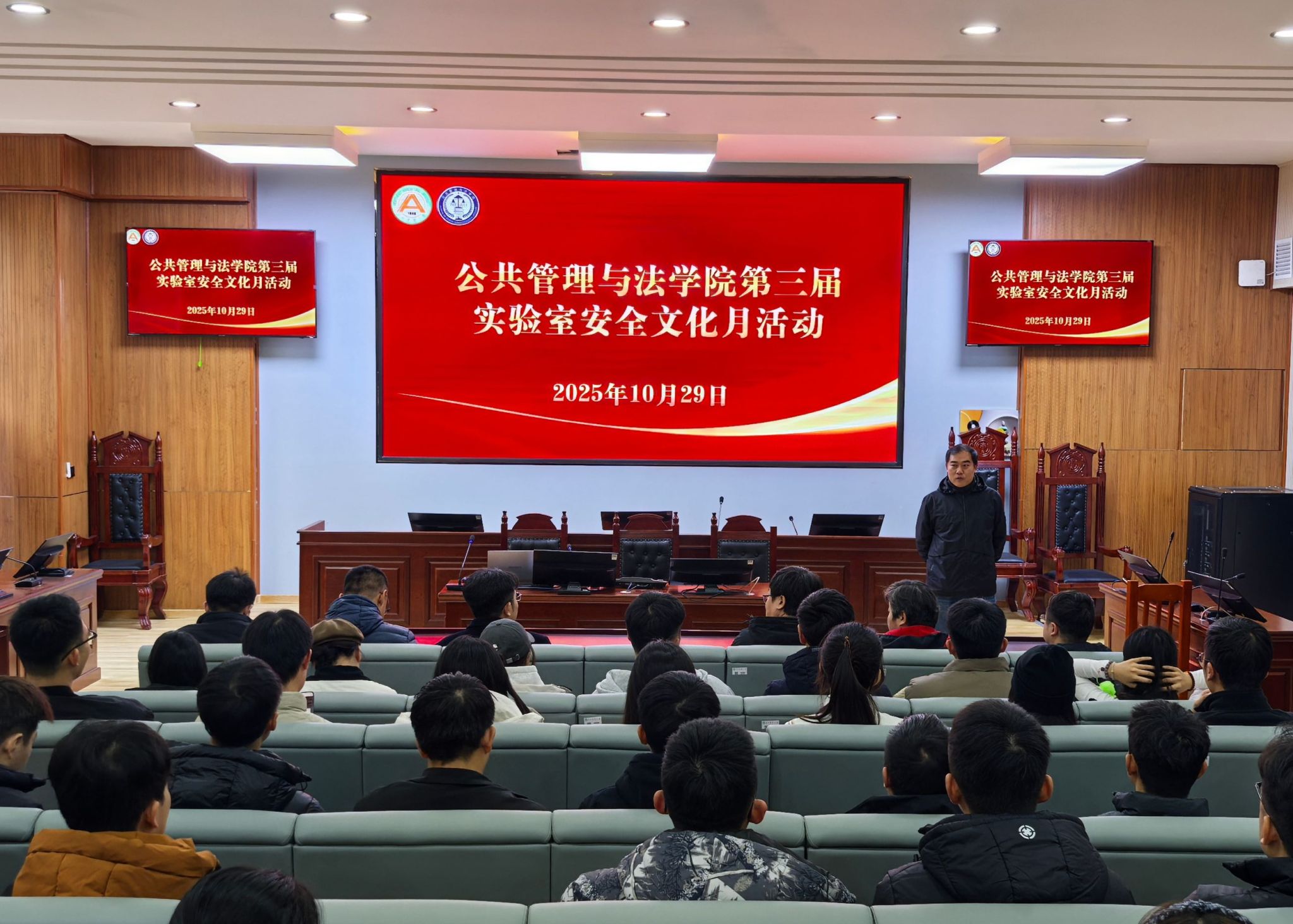 10月29日,公共管理与法学院在研究生楼303室开展实验室安全文化月活动。学院副院长黄善林,保卫处和实验管理处相关人员以及学院实验中心负责老师、各实验室安全负责人及师生代表共同参加活动。
