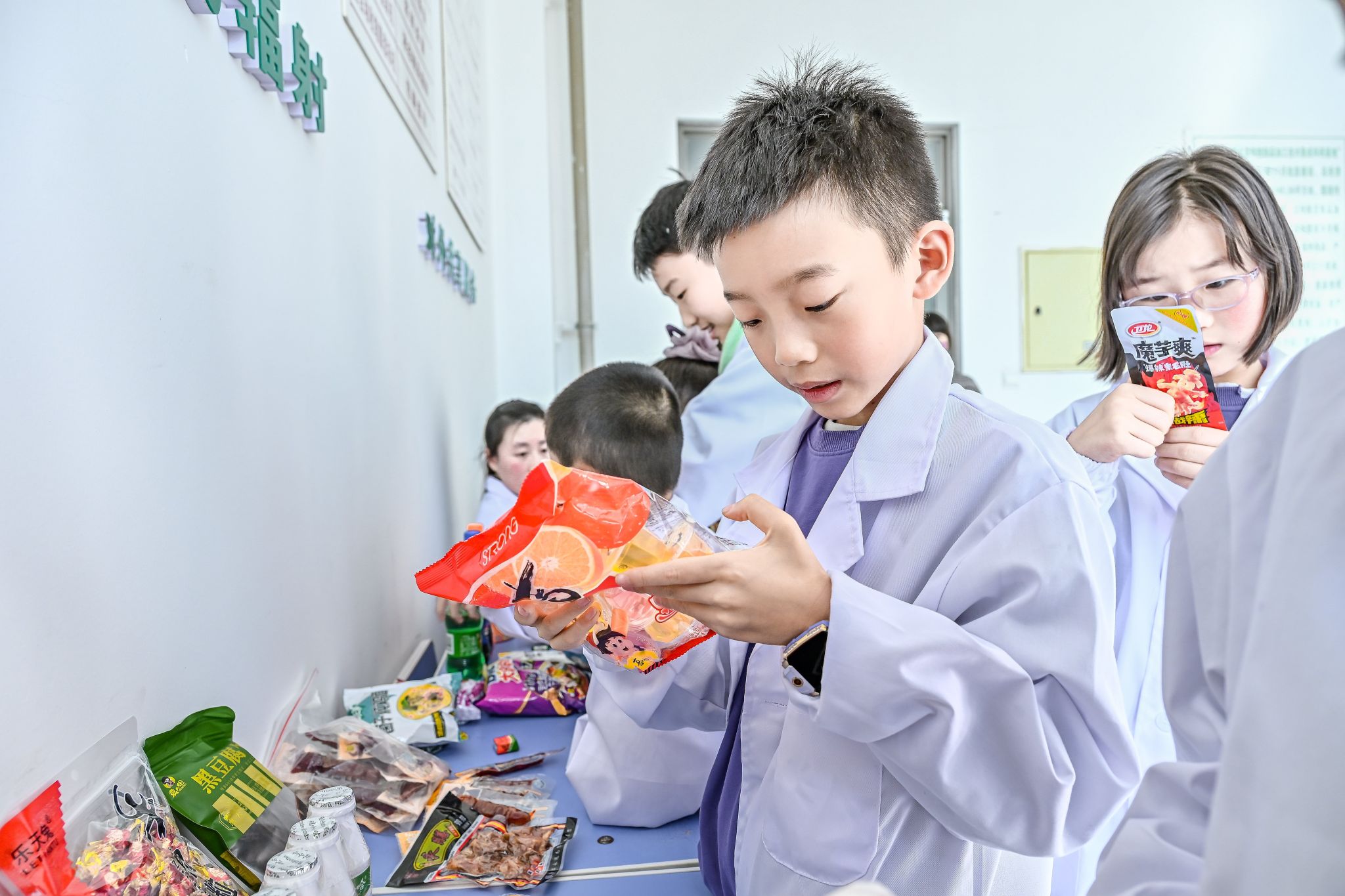 探索第四站,孩子们聚焦食品标签,化身“食品安全小侦探”。科普老师通过生动的图文和实物展示,向孩子们详细讲解了绿色食品标识的含义与认证标准,以及如何认识食品标签。孩子们在“找”与“比”的过程中,将如何查看食品配料表、营养成分表、生产日期和保质期等食品安全知识,内化为一种本能的鉴别力,掌握了践行“做自己健康第一责任人”的实用技能。