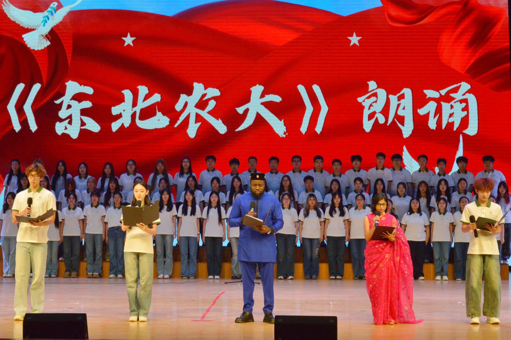 本次活动是学院推进国际化人才培养、构建多元校园文化生态的重要举措。晚会紧扣“交流互鉴、青春同行”的主题,以文化为纽带,艺术为媒介,搭建中外学生交流互鉴的平台。活动以中华优秀传统文化为底色,融合世界多元文明,通过歌舞、朗诵、乐器演奏等多样化的艺术形式,生动展现了东方美学的深邃与世界文化的多彩,充分彰显不同文明的独特魅力与价值共鸣。来自俄罗斯、孟加拉国、巴基斯坦、朝鲜等国的留学生纷纷登台献艺,以各具特色的表演表达对中国文化的热爱与敬意,现场掌声与欢呼此起彼伏,气氛热烈而感人。