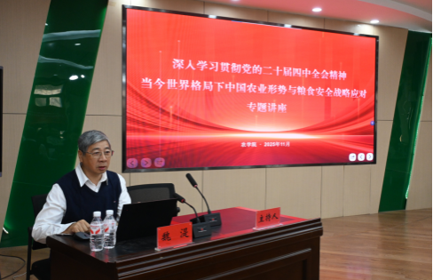 为深入学习贯彻党的二十届四中全会精神,进一步强化“强农有我”的使命担当,11月19日下午,农学院举办农业形势专题讲座。讲座特邀学院原院长魏湜教授主讲,主题为《当今世界格局下中国农业形势与粮食安全战略应对》。校工会副主席车可舒、农学院领导班子成员、农学院全院教职工以及园艺学院、资环学院、植保学院的部分教师和相关博士研究生党员代表参加活动。本次活动由农学院正处级辅导员、工会主席张华英主持。