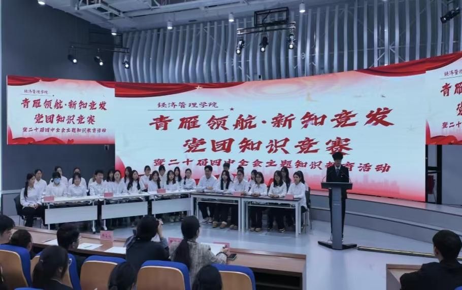 为深入学习贯彻党的二十届四中全会精神,深刻领悟习近平新时代中国特色社会主义思想的核心要义,以赛促学强信念、以赛砺行践初心,11月19日,经济管理学院在成栋楼报告厅举办“青雁领航,新知竞发”党团知识竞赛决赛。学院辅导员陈曦、王瑞锋、杨金焓、张雨彤、高群参加本次活动。