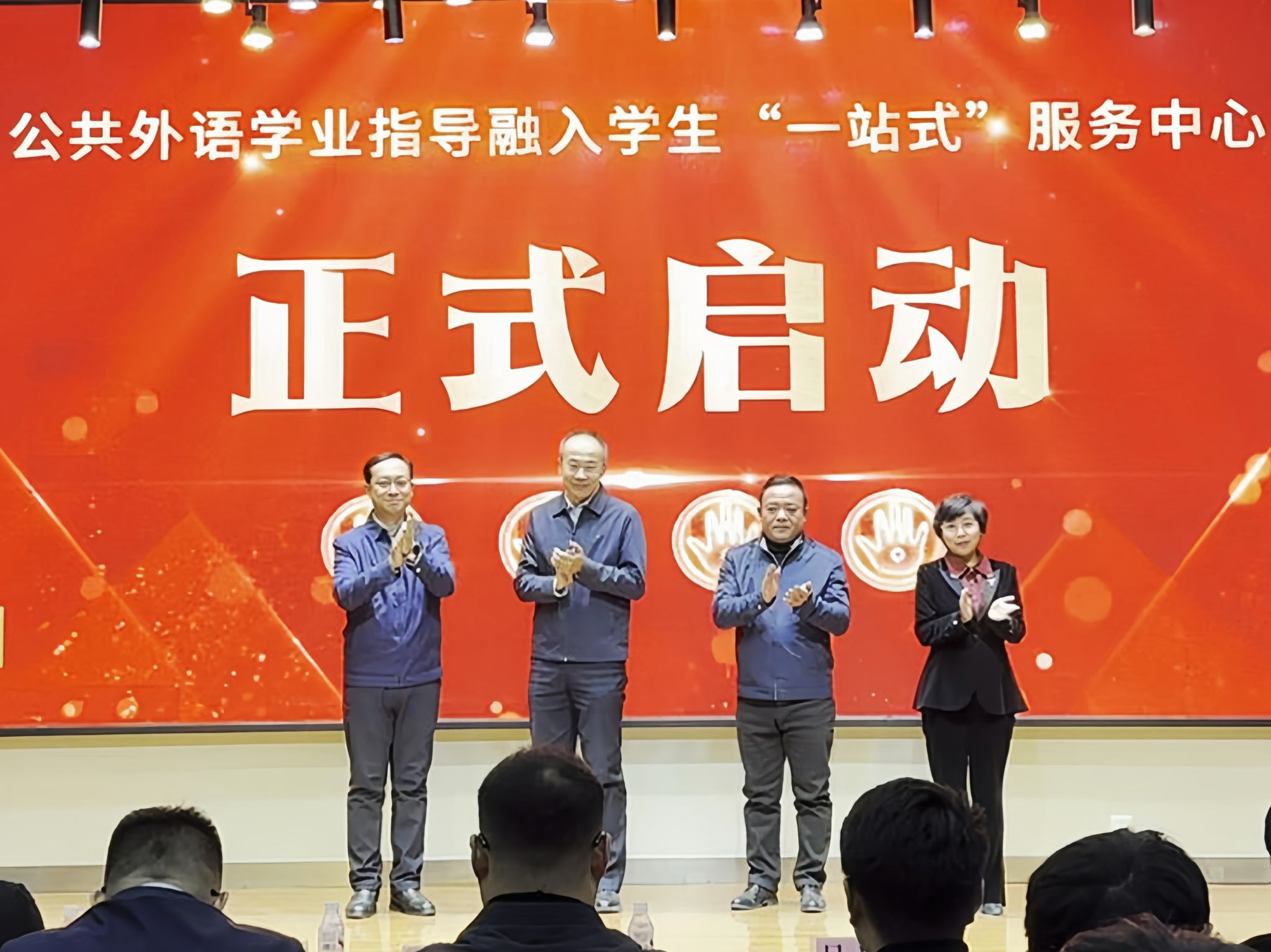 启动仪式上,李曼就《公共外语学业指导融入学生“一站式”服务中心活动方案》进行解读,与会领导共同按下启动程序。