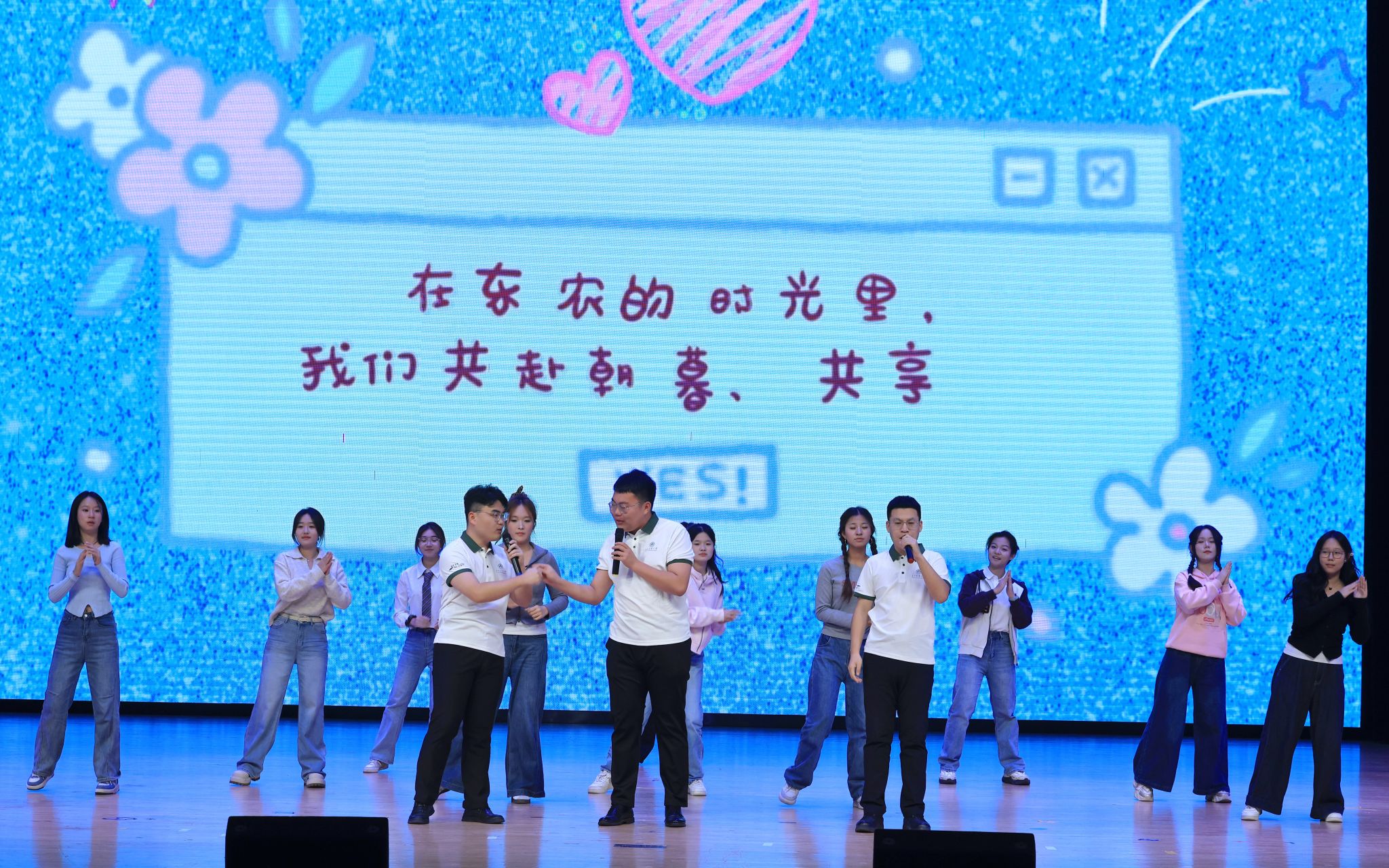 表彰大会结束后,迎新生文艺晚会精彩上演。歌舞、情景剧等节目轮番登场,充分展现了食品学子的青春活力与多才多艺。学院用精彩的演出为2025级新生送上诚挚欢迎,进一步凝聚了全院师生向心力。