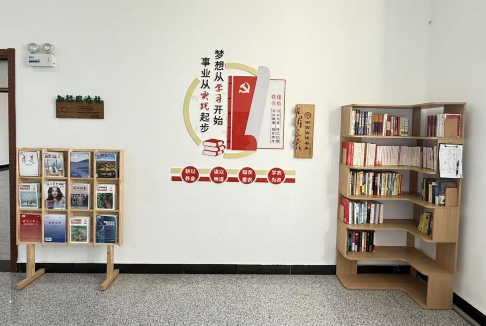 打造基本阵地标准化,营造浓厚党建氛围。推动理论武装与实践育人有机融合,党支部在基地设立“耕学读书角”与“知行阅读坊”,定期组织读书交流分享,引导师生在耕读中涵养初心、在知行间锤炼本领,成为激发灵感、交流知识的充电驿站;同步提升党建文化墙建设,以系统化的视觉语言亮明党员责任义务,标定党支部工作规范,成为凝聚共识、传播理念的无声课堂。墙里墙外,党的元素融入日常;线上线下,组织声音持续回响,不断强化着党支部的引领力和影响力。