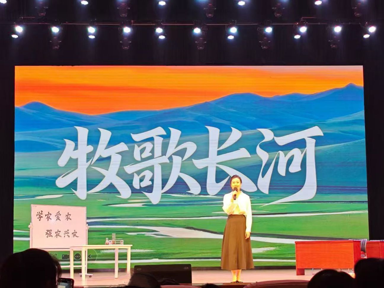 大会第二篇章以师生共讲思政课的创新形式展开。原创舞台剧《牧歌长河》循着时代足迹,讲述了许振英先生、王庆镐先生、盛志廉先生、杨山先生深耕畜牧领域的感人故事,生动诠释了“艰苦奋斗、自强不息”的东农精神,展现了一代代动科人坚守初心、奉献担当的精神传承。