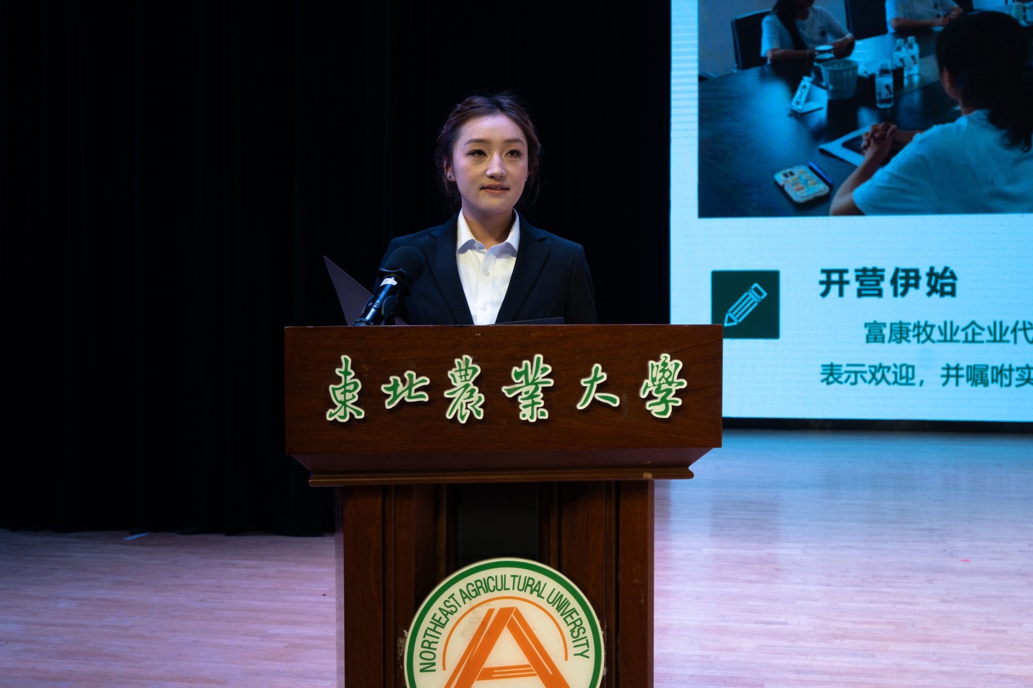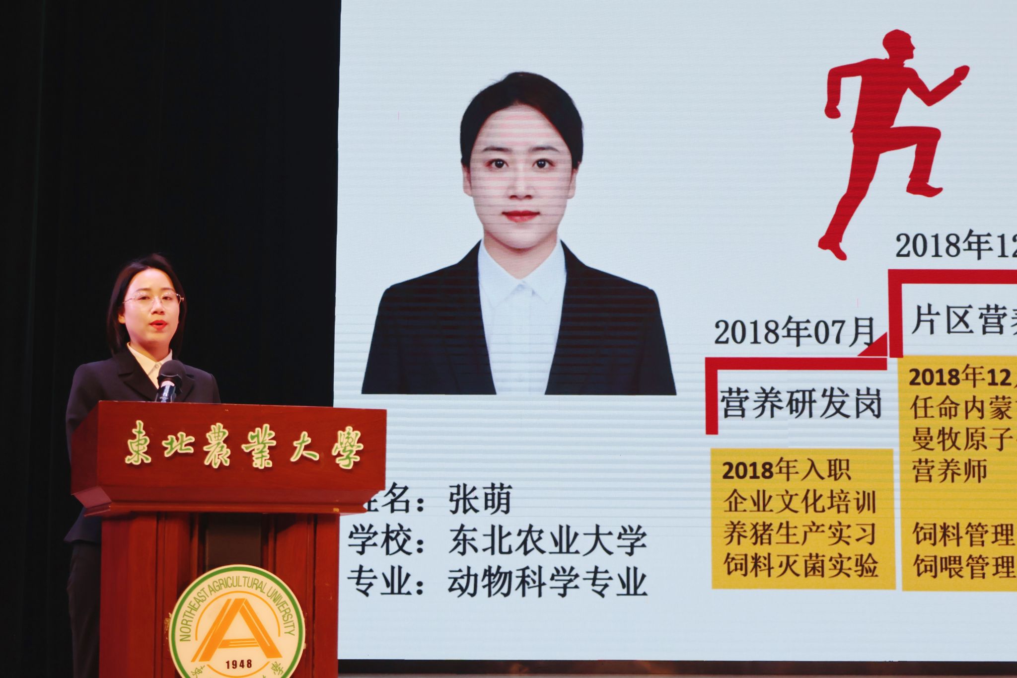 张萌受邀分享成长历程。她以“让人们吃上放心猪肉”的初心使命为切入点,讲述了自己深耕动物营养与饲料技术领域的奋斗故事,并为同学们送上“勤学、善思、敏行”的成长寄语。