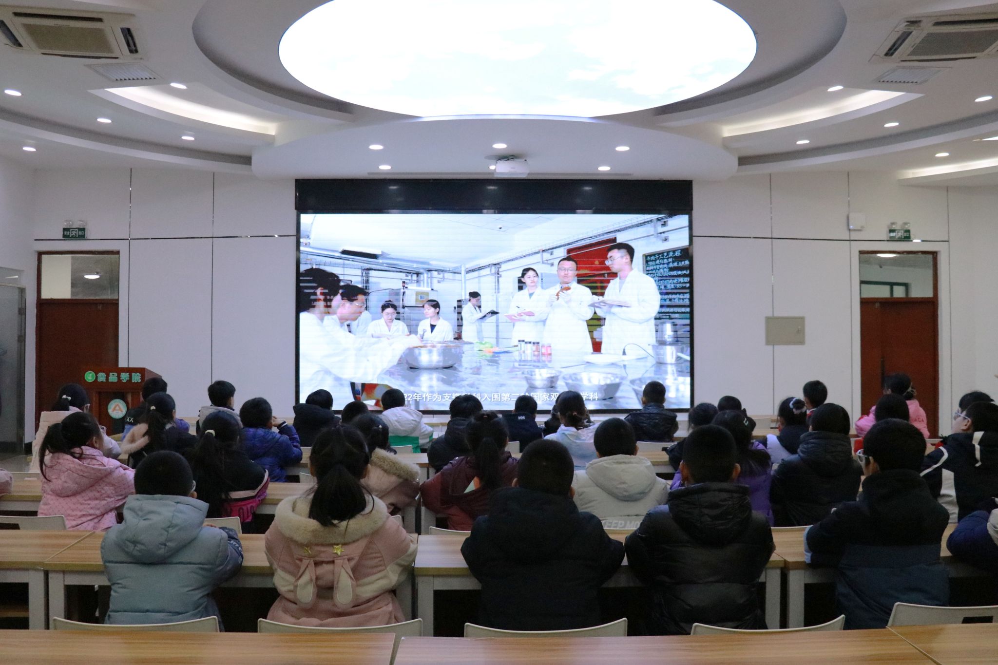 随后,师生共同观看了食品学院宣传片,全方位了解学院在学科建设、科学研究、人才培养和社会服务等方面的成果,真切感受到食品科学与日常生活的紧密联系,激发了对自然科学的探索兴趣。