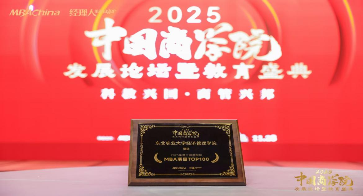 11月28日下午,由MBAChina和《经理人》杂志联合主办的“2025年度中国商学院发展论坛暨教育盛典”在北京举行。本次盛典以“科教兴国、商管兴邦”为主题,吸引了三百余位来自政界、教育界的专家学者、商科院校代表、行业领军人物、专业研究机构以及国内外主流教育媒体等相关人士参与。盛典现场发布了“2025年度中国商学院MBA项目TOP100”榜单,我校经济管理学院凭借卓越的综合实力荣耀登榜,这一殊荣充分彰显了学院在商学教育领域的突出贡献与强大实力。