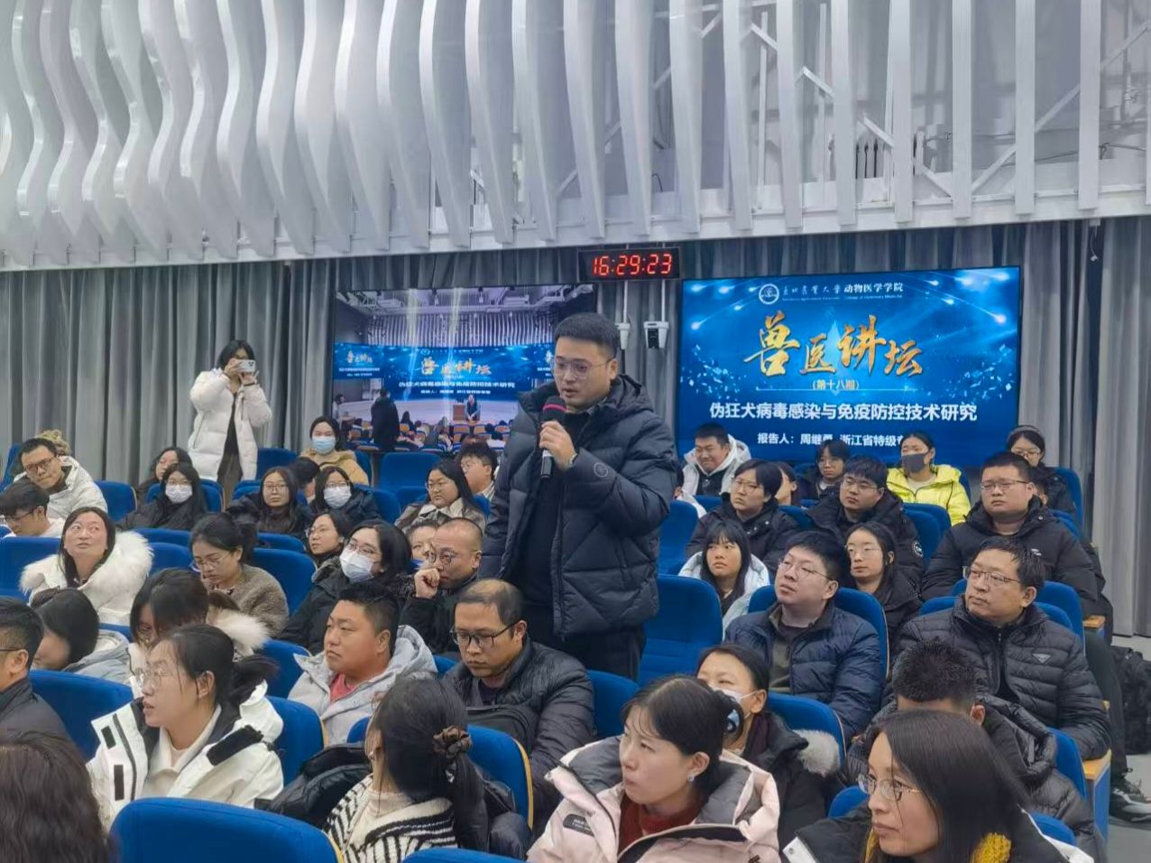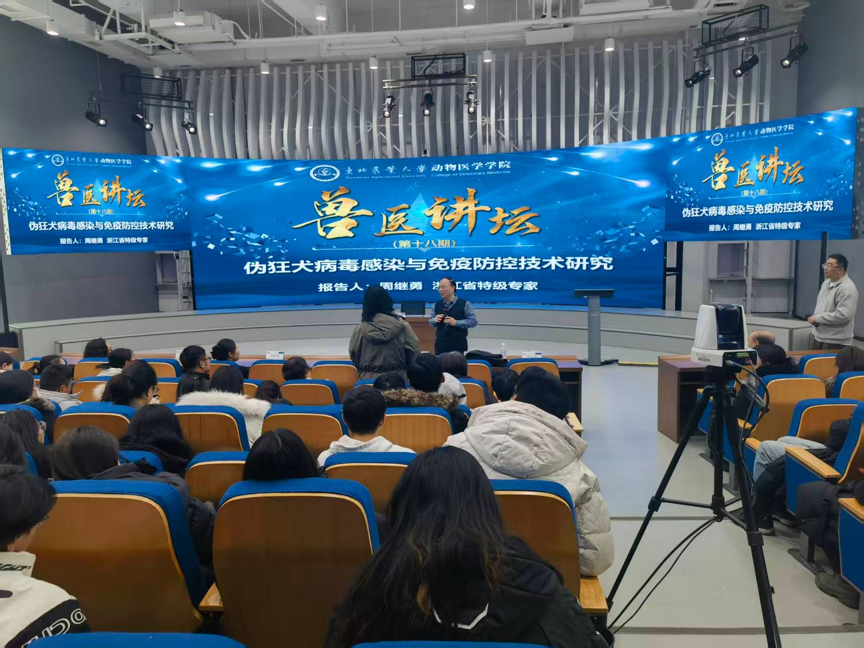 12月4日下午,动物医学学院举办第十八期兽医讲坛。本次讲坛特邀浙江省特级专家、浙江大学动物医学中心主任周继勇以《伪狂犬病毒感染与免疫防控技术研究》为题进行分享。学院领导班子、骨干教师、研究生及本科生代表参加讲坛。讲坛由学院院长李金龙主持。