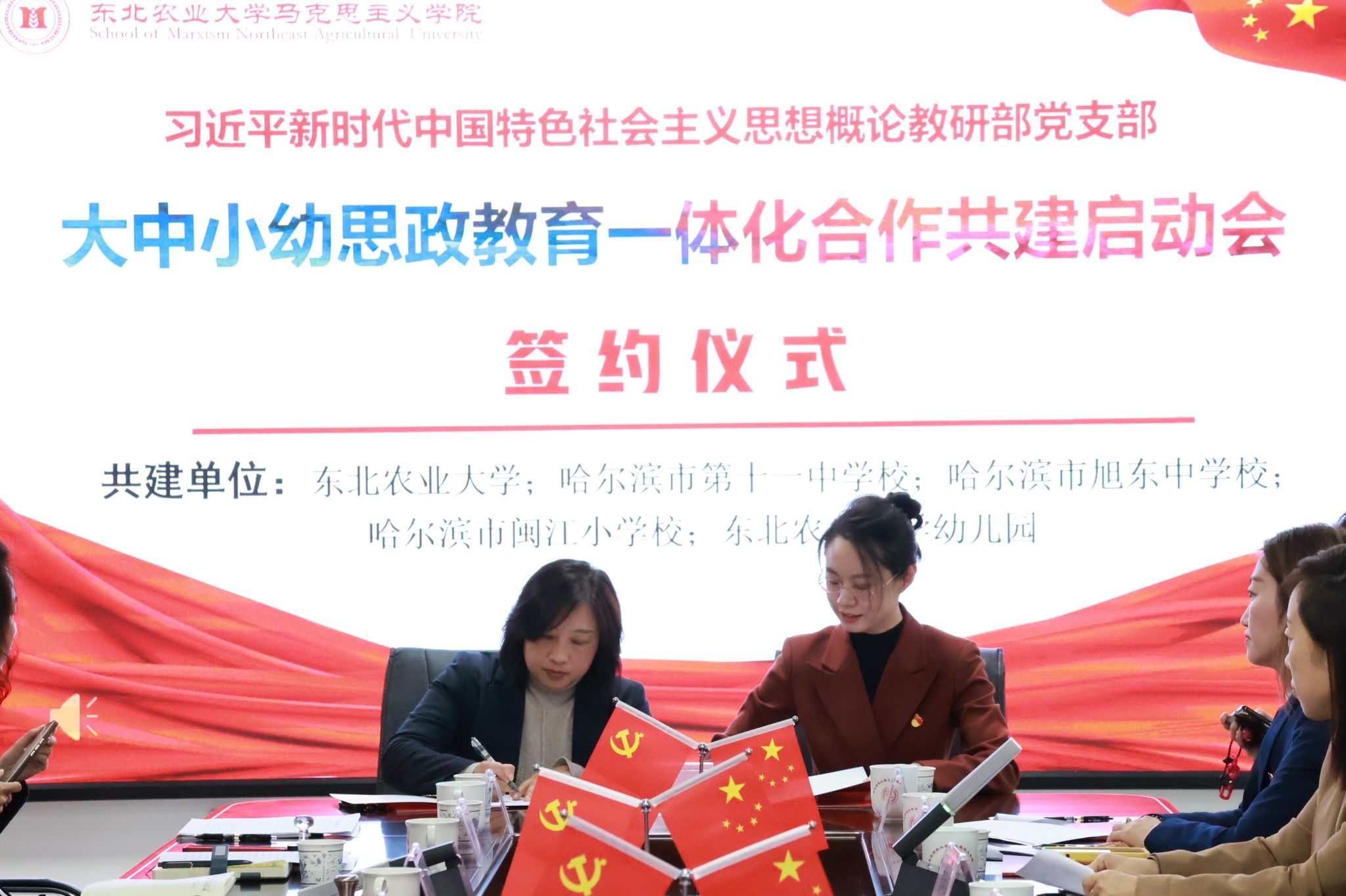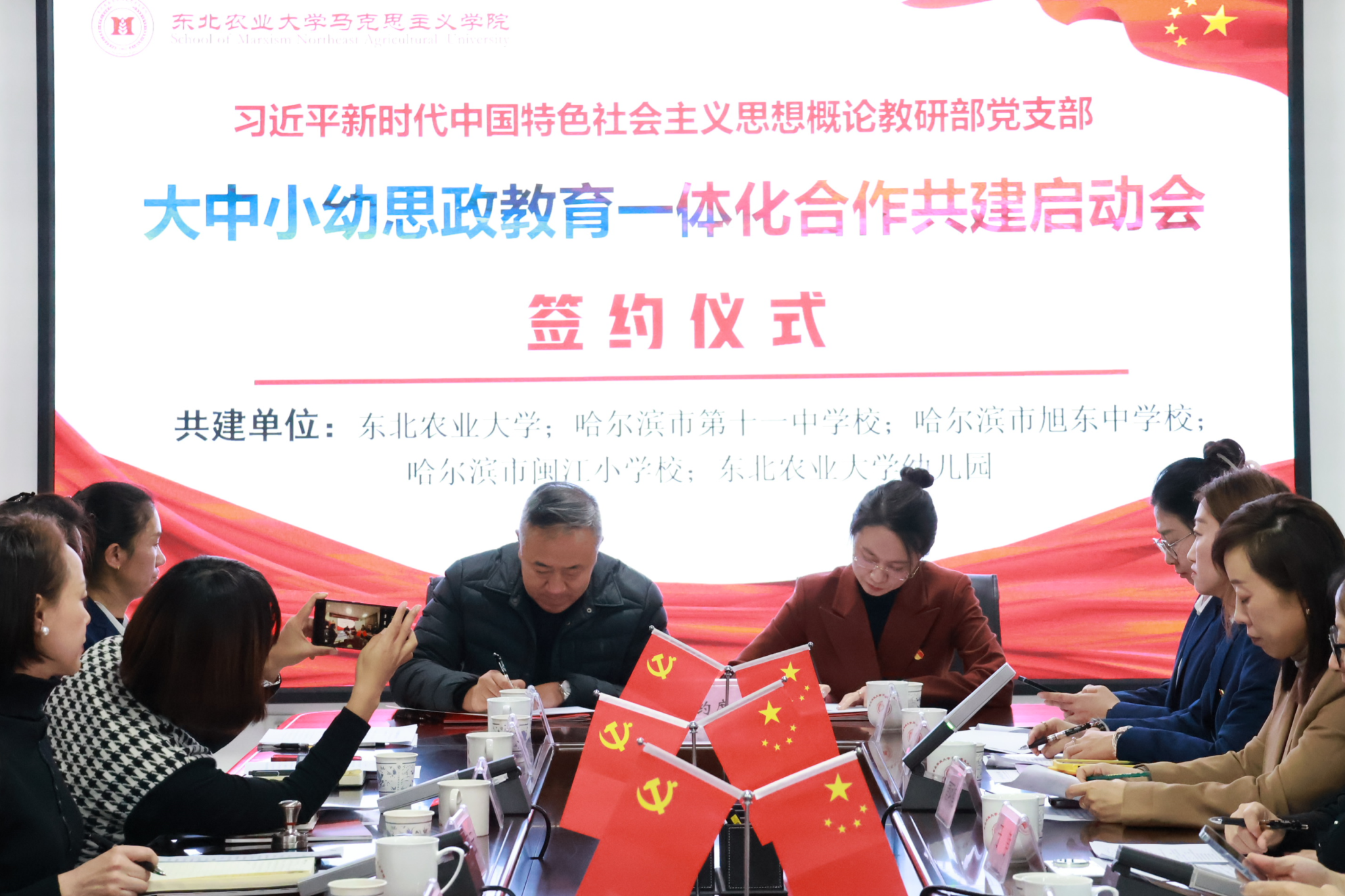 12月5日下午,马克思主义学院习近平新时代中国特色社会主义思想概论教研部党支部联合哈尔滨市第十一中学校、旭东中学、闽江小学等多家单位在成栋楼1010会议室举行合作共建启动会。哈尔滨市第十一中学党总支书记校长王作圣,哈尔滨市旭东中学副校长张丽云,闽江小学党总支书记王惠颖,农大幼儿园园长李晓梅,马克思主义学院党委书记吕晶出席会议。各学校教师代表,习近平新时代中国特色社会主义思想概论教研部党支部全体党员参加会议,吕晶在会上致辞,会议由唐阿楠主持。
