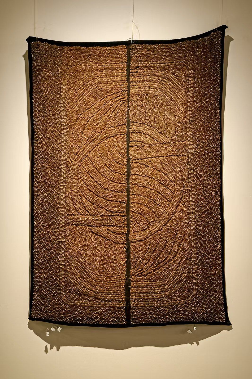 作品《心田》以天然苍耳种子作为核心创作材料,采用手工勾粘技法将种子在绒布上精准排布,形成蜿蜒起伏的“心路曲线”。苍耳的原生形态与粗糙质地,隐喻人内心未经雕琢的本真状态,层叠交错的种子排列,则象征着心田中交织的思绪与意念。作品借助植物纤维类生态材料,将自然种子转化为叩问心灵的艺术符号,既映照出生命与精神的生长轨迹,也体现了纤维艺术在科技、生态、文化及观念维度的深刻嬗变,是我校耕读文化与生态可持续发展理念的视觉化表达,更凝结着对艺术学院建院二十周年的深情礼赞。