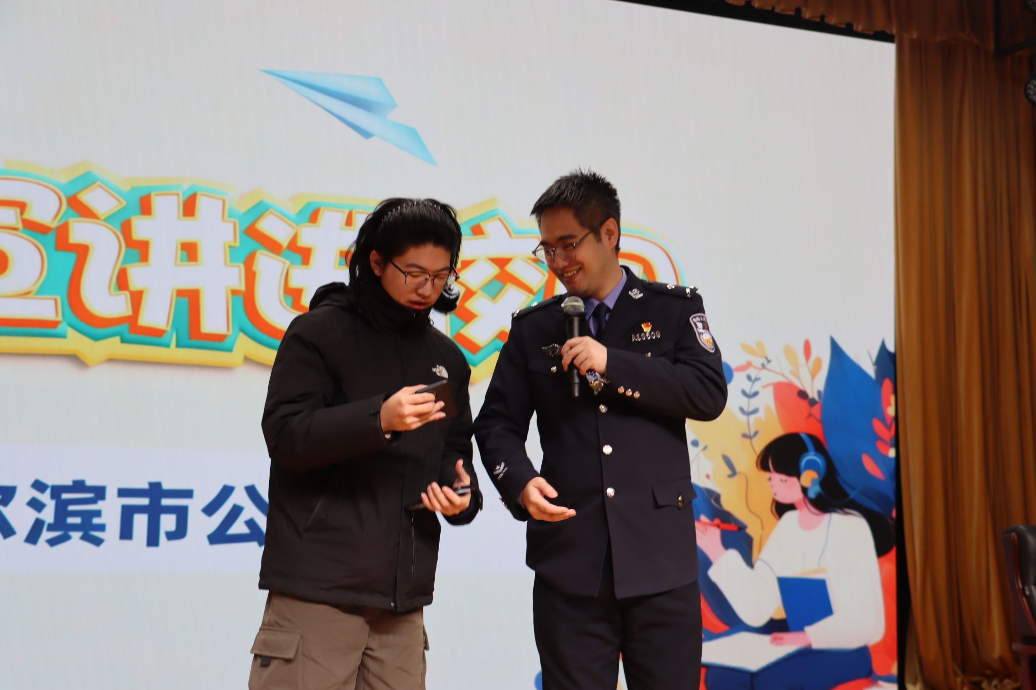 哈尔滨市公安局宣讲团队创新形式、注重实效,围绕反诈主题展开沉浸式讲解。警官以脱口秀形式,结合亲身经历,通过与学生互动,普及和宣传反诈知识。通过实际案例、视频、图片等形式,从“刷单返利诈骗”“虚假购物类诈骗”“交友类诈骗”“校园贷款征信类诈骗”“冒充领导熟人类诈骗”“网络游戏类虚假交易类诈骗”等高发诈骗场景关键节点进行解读,分析诈骗分子的话术漏洞和心理操控技巧,并明确给出“拒绝转账、多方核实、及时报警”等具体解决办法。此外,专家还针对学生群体常用的社交软件、购物平台,讲解了隐私保护、账号安全等实用技巧,帮助师生搭建起“事前预警、事中应对、事后维权”的反诈防护体系。