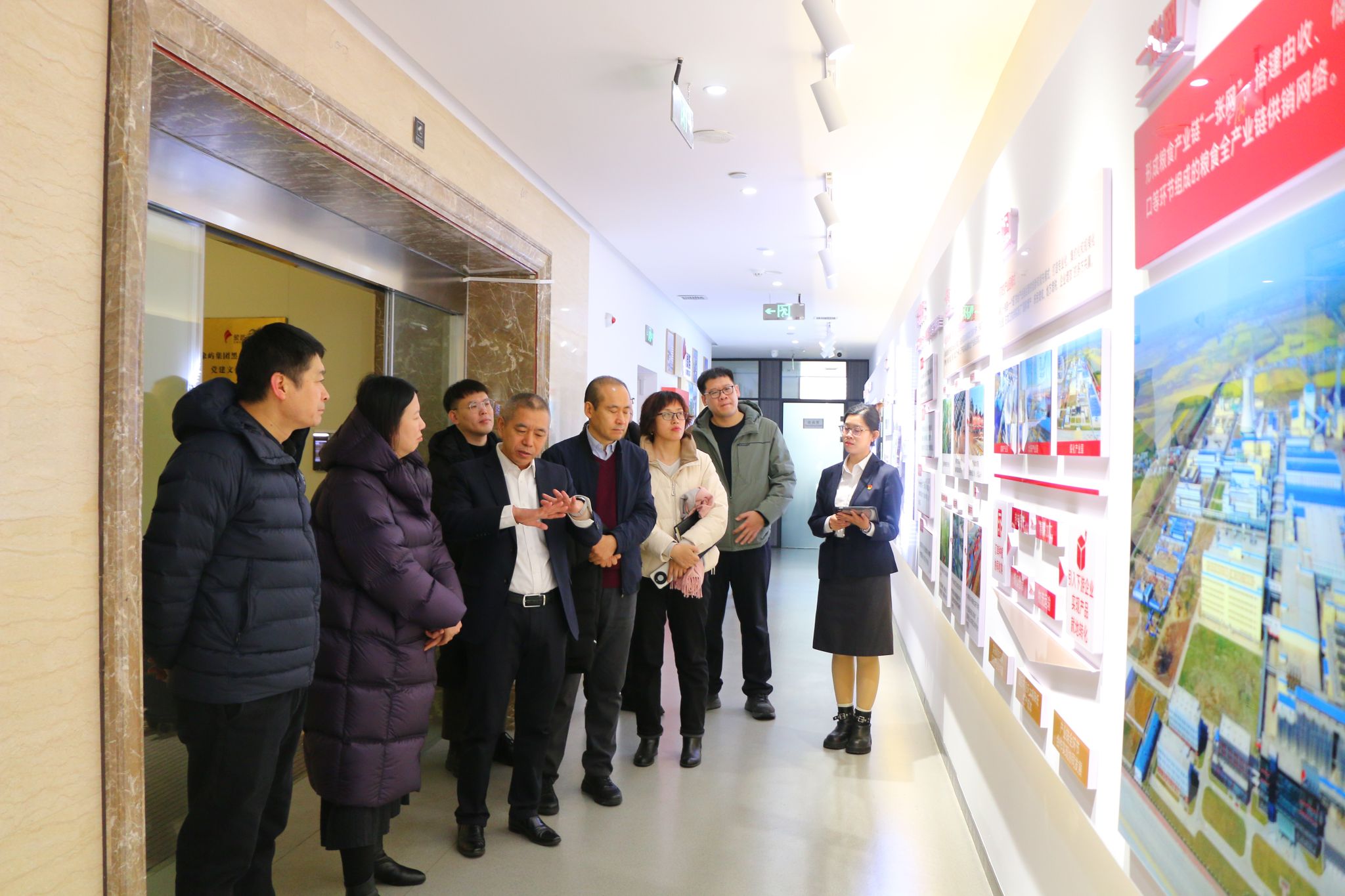 动物科学技术学院一行参观了企业文化长廊。象屿集团深耕黑龙江十余年,构建了覆盖“种、收、储、运、销、加”的粮食全产业链。其核心企业黑龙江金象生化有限责任公司,在玉米精深加工领域投资超70亿元,年加工能力达350万吨,并凭借世界首创的缬氨酸生产工艺等创新技术,引领产业绿色发展。