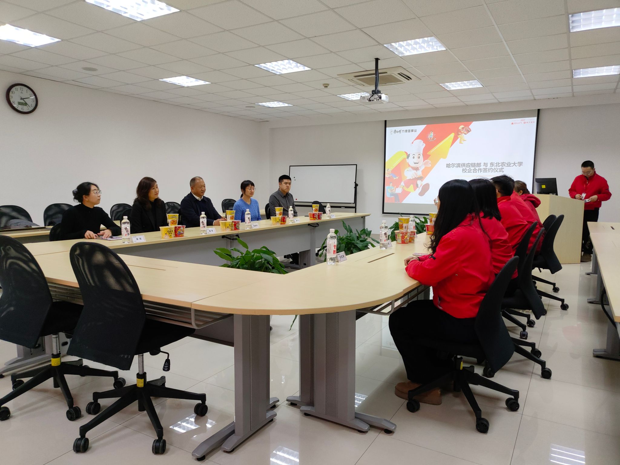 12月25日,食品学院党委书记施喜军、党委副书记钱芳、食品科学与工程系主任夏宁及2022级辅导员高忠琦、梁爽一行5人,赴哈尔滨顶益食品有限公司(康师傅)深入开展访企拓岗与校企合作交流活动。哈尔滨顶益食品有限公司厂长翟增翼、人资处处长苏聪、制面处处长周凯、品质管理处检验科科长边凤兰等企业负责人共同参加座谈交流。